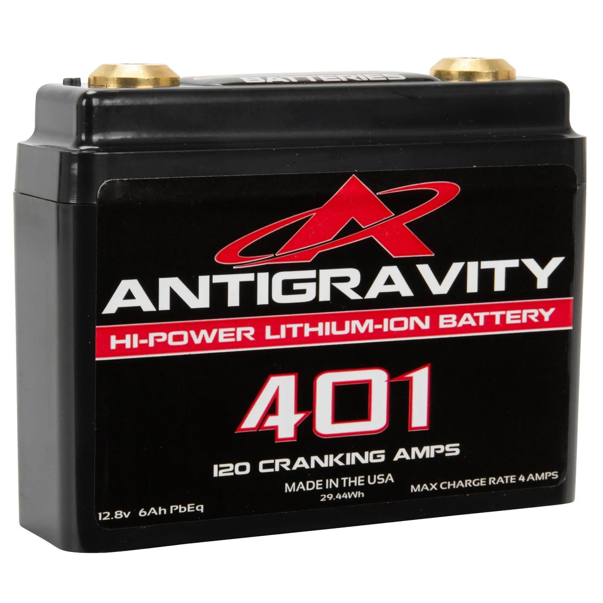 This is the smallest battery in the Antigravity Batteries line up. At a minuscule 4-1/4″ length x 1-1/4″ depth and 3-3/4″ height this battery offers extreme power in the most compact size in Lithium Motorsport batteries. This battery is best used for applications where extreme weight loss and ultra compact size are desired. Can start inline 4-Cylinder motors up to 600cc for race use, or up to 250cc for everyday street use in scooters Also a favorite of custom builders who want the smallest battery to tuck out of the way.