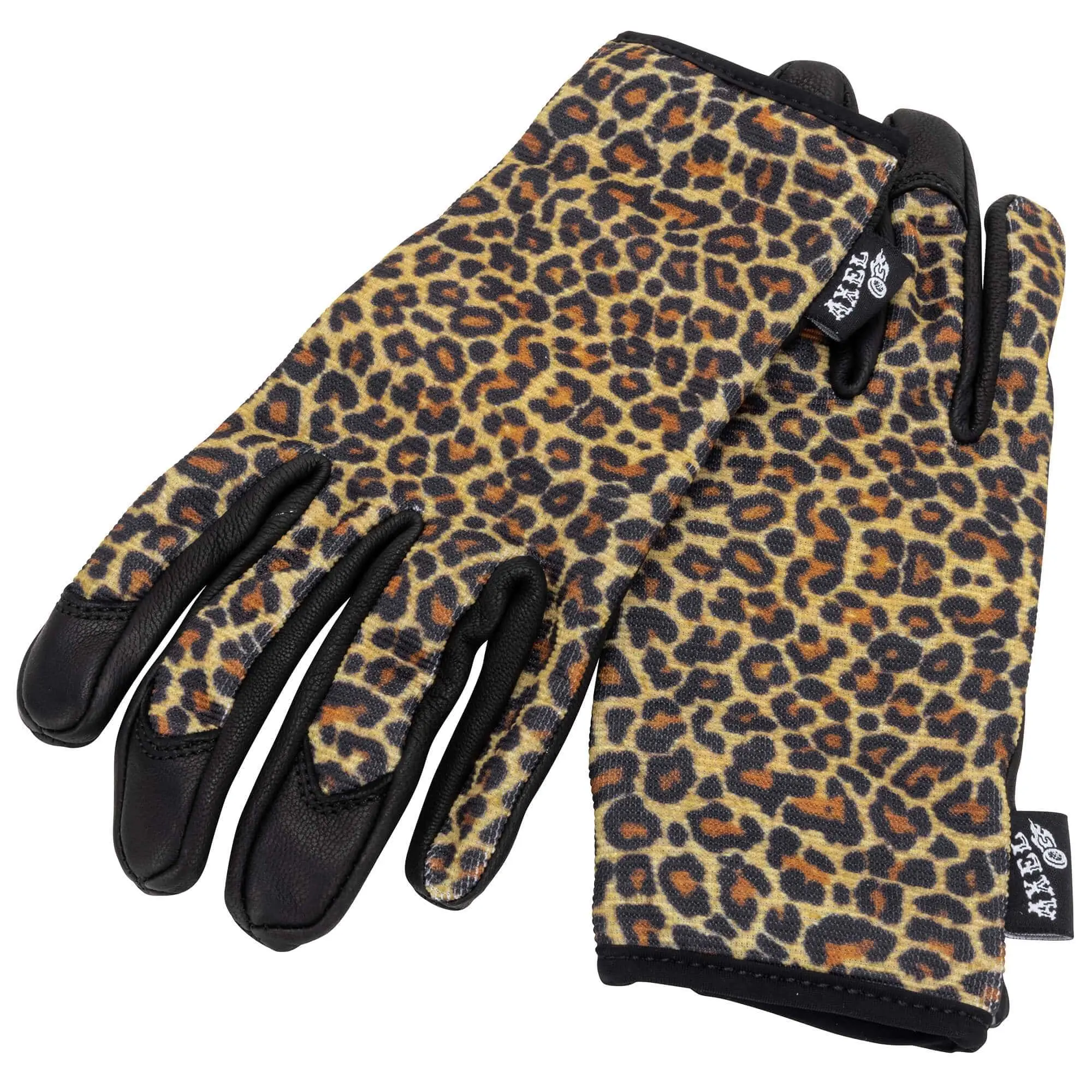 These mesh top gloves from Axel Co. are made from a breathable, stretchy material and feature a leopard print pattern. They are touch screen compatible with pointer and thumb finger touch screen sensors, and feature velcro wrists.