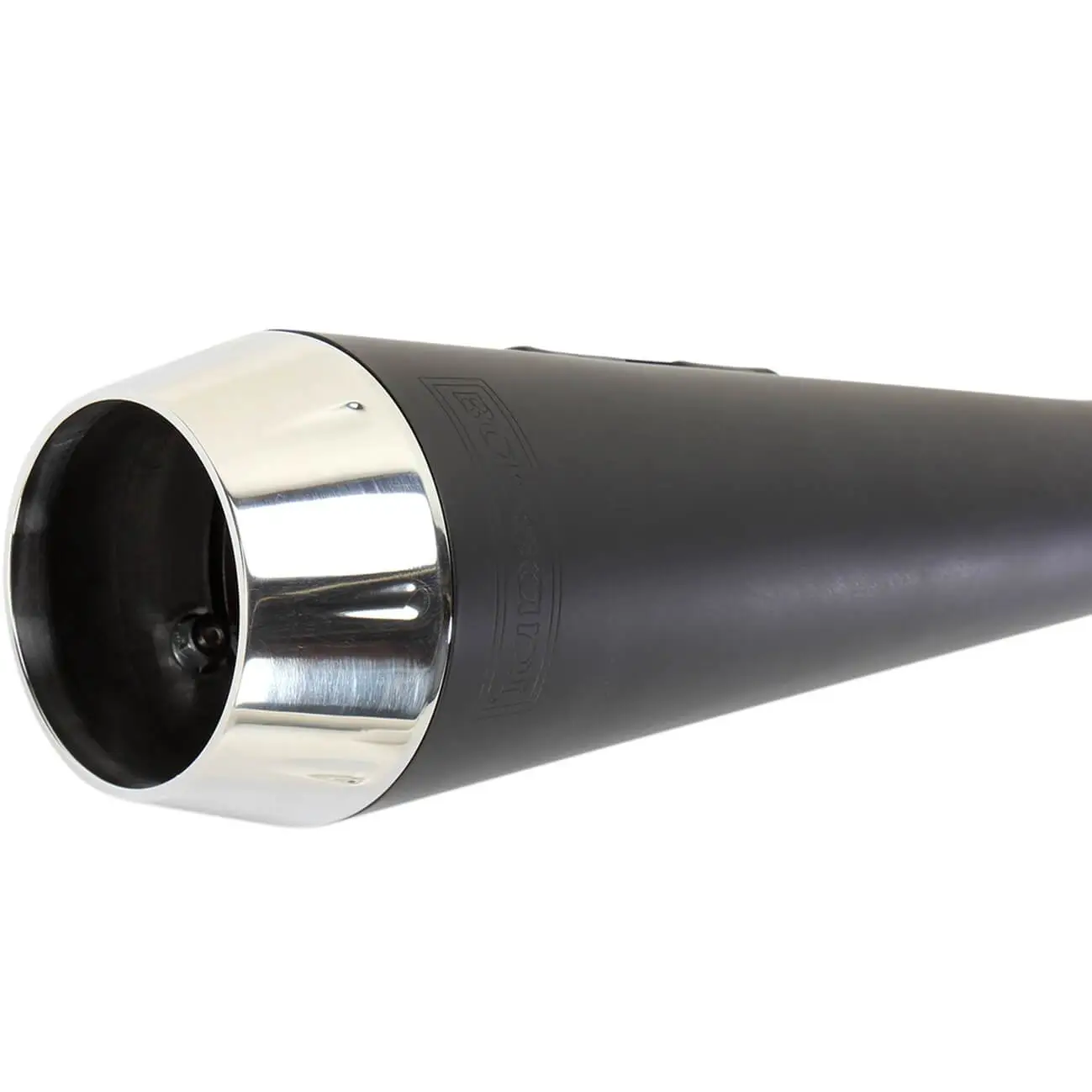 - 4 in. true reverse-cone megaphone muffler with a polished billet end cap