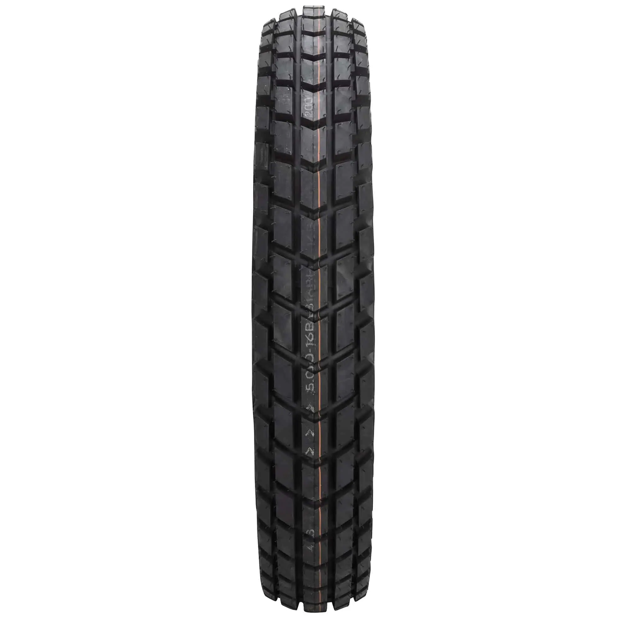 Here’s a scrambler tire right on the tracks of the legendary Goodyear Grasshopper, capable of doing it all: ample grip on the road with a tread pattern that will get you out of the deepest ruts off the road.