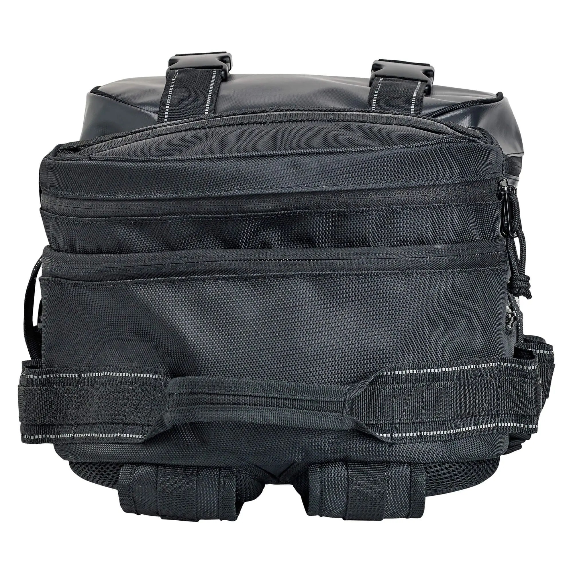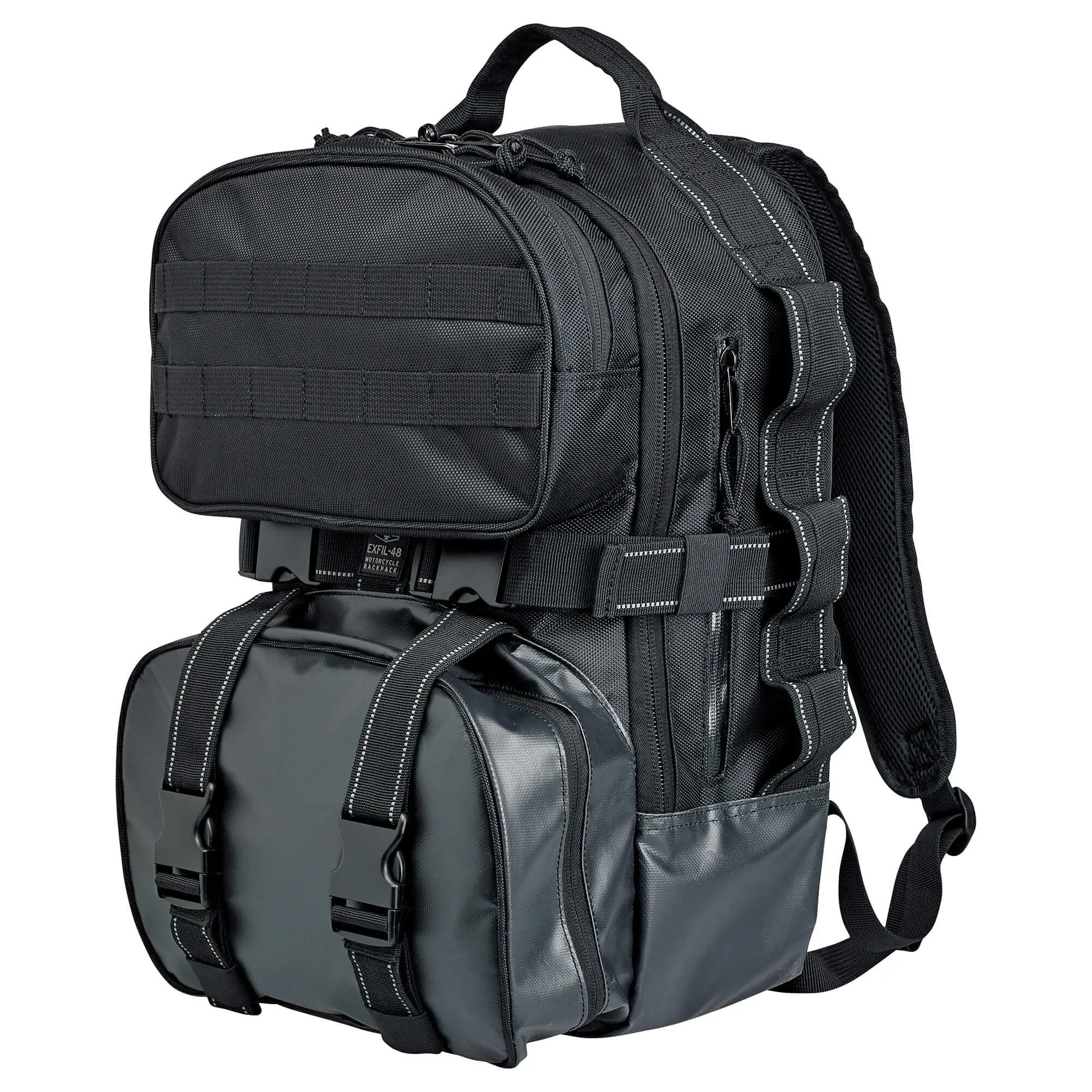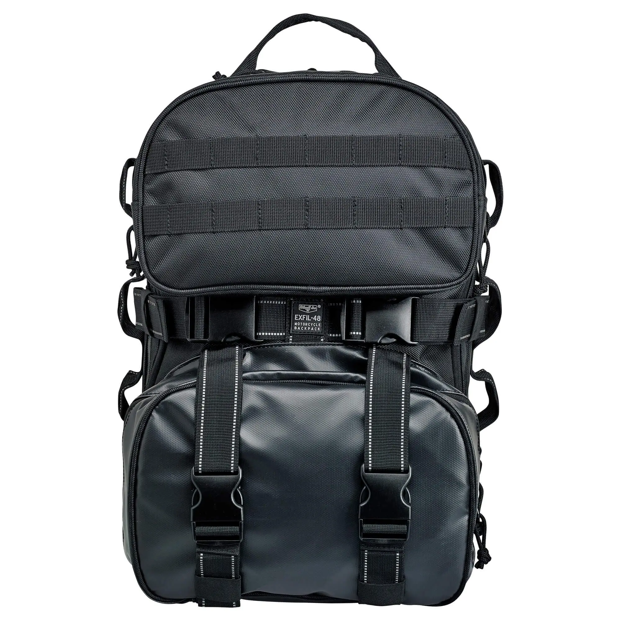Designed by bikeriders for bikeriders, EXFIL-48 features compression straps that do double duty as mounting straps, so you can fasten your backpack to the sissy bar to give your shoulders a break on long rides. Packed with enough storage capacity to gobble up 48 12-ounce cans of your favorite barley pop.