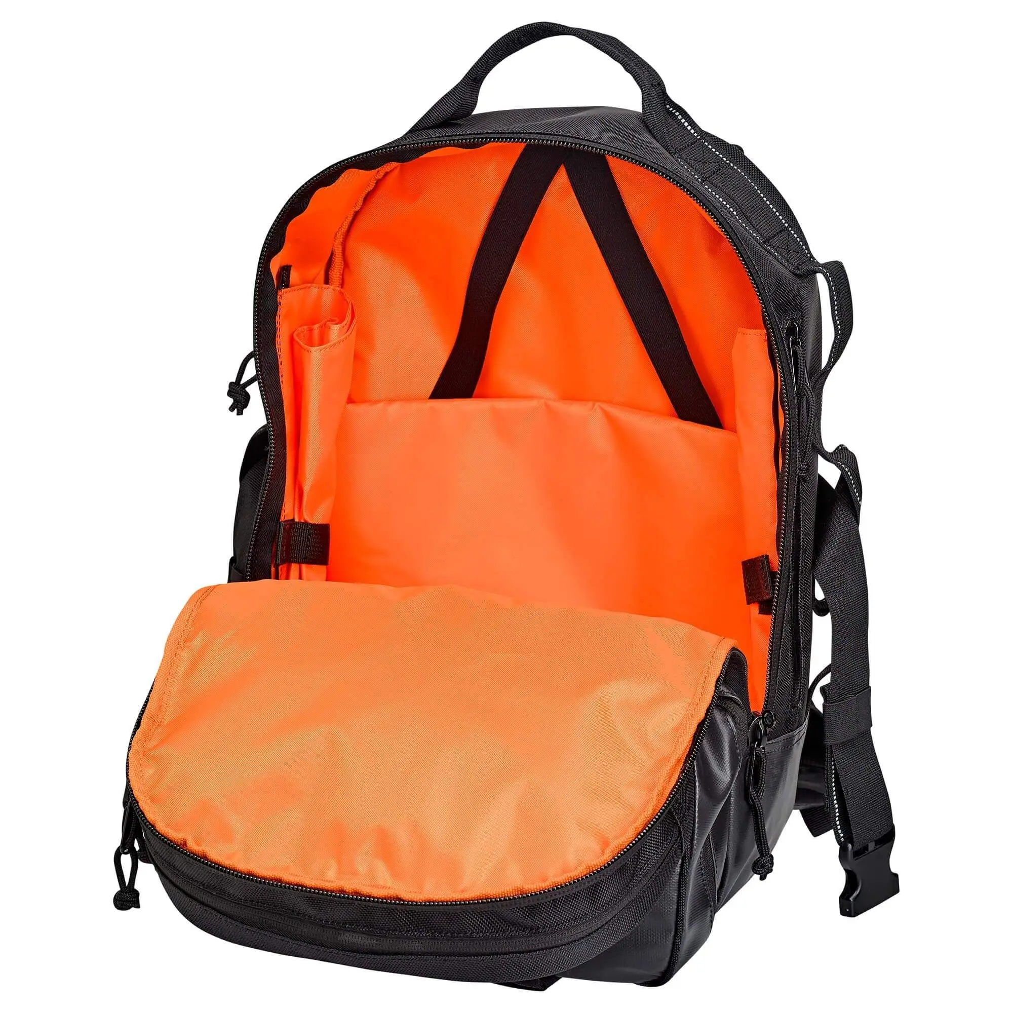 -One main and two secondary compartments, each lined with hi-vis orange nylon for speedy contents ID