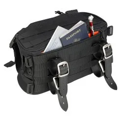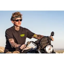 Like all Biltwell’s luggage designs, you can mount EXFIL-7 anywhere. On our personal bikes we’ve mounted over-stuffed EXFIL-7’s on the down tube, over the headlight on tall risers, and on both sides of the sissy bar. A pair of EXFIL-7’s will hang perfectly on H-D fender struts to create a set of mini saddle bags. EXFIL-7’s MOLLE system and reinforced PVC straps make all these options possible. Once mounted, EXFIL-7 gobbles up personal gear like wallets, pocket knives, phones, tools and other stuff to become the glove box most motorcycles need but don’t have.