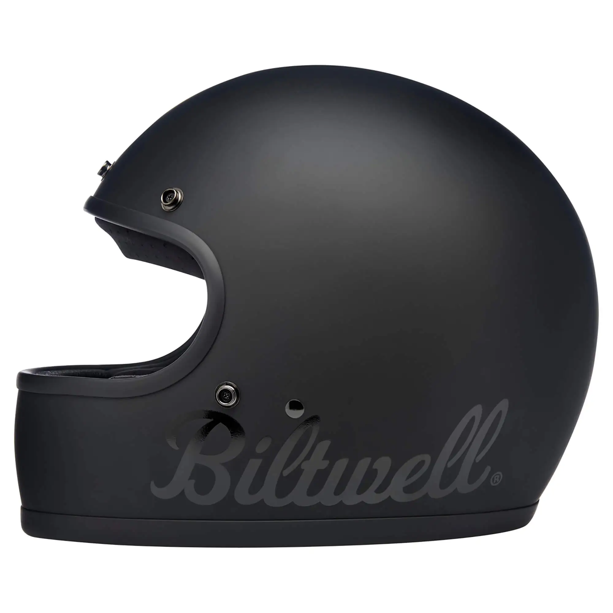 Construction: Seamless injection-molded ABS outer shell, shock-absorbing EPS inner shell and a removable, hand-stitched removable comfort liner with open-cell foam and brushed Lycra construction. The chinstrap is adorned with brushed Lycra material on touch points and features a flat D-ring fastener with an adjustable snap end retainer. Five snaps around the Gringo’s eye port facilitate easy installation of a Biltwell bubble shield or Blast shield (sold separately.)