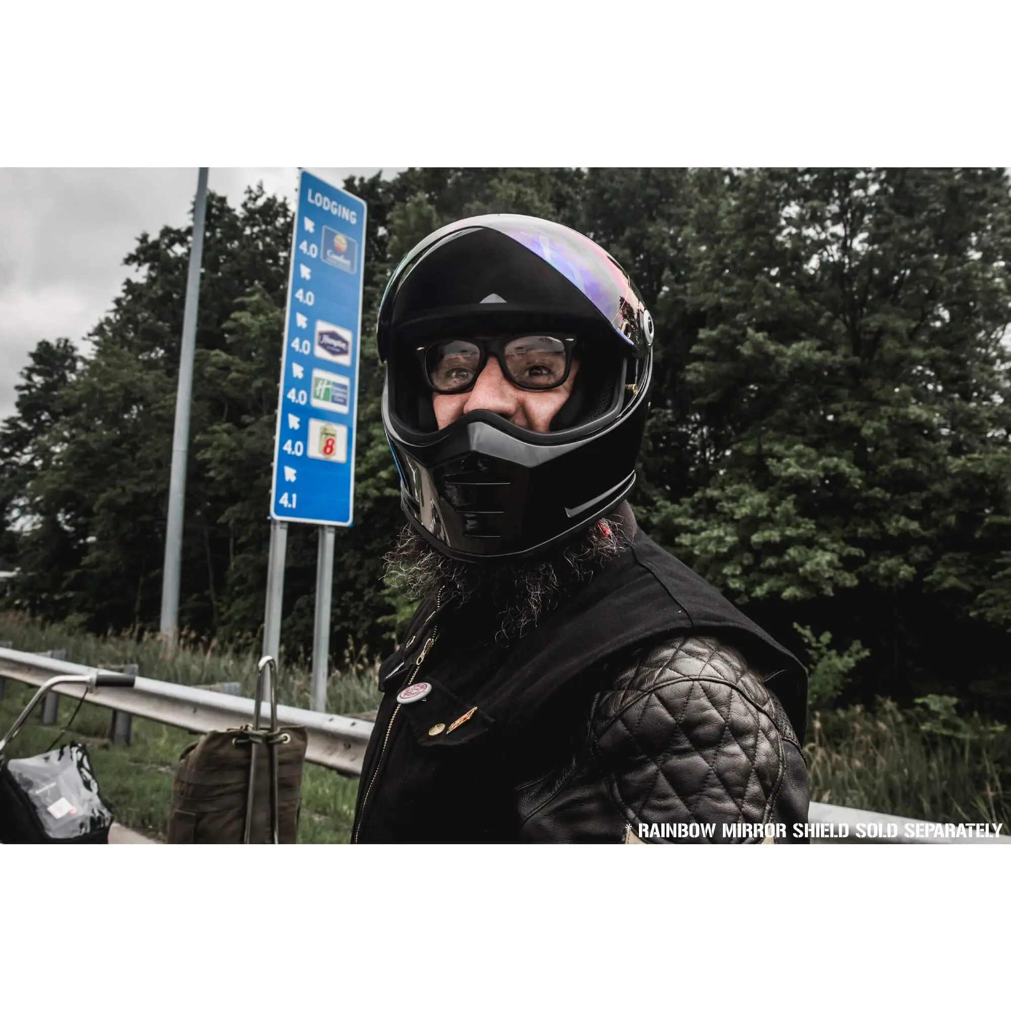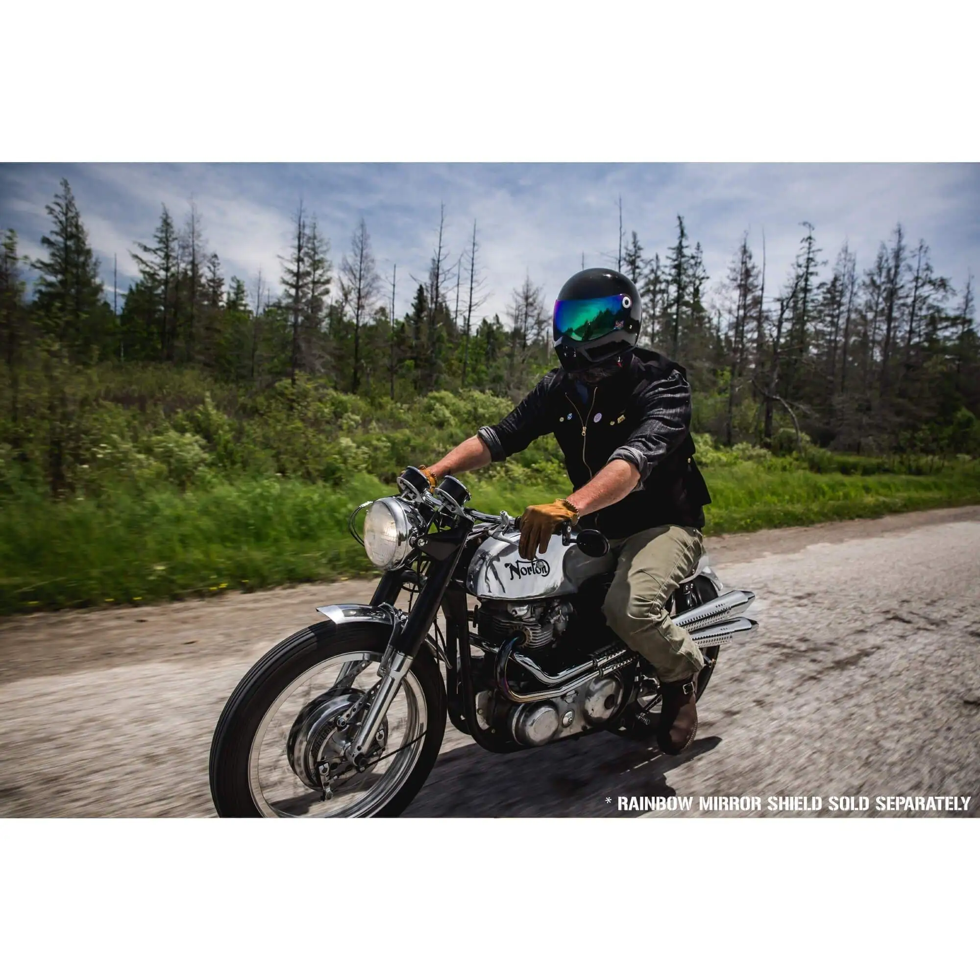 Progressively styled and rigorously tested, Biltwell’s ECE-certified helmet is a top choice for riders who demand comfort and high performance. Features include a rugged ABS outer shell, ventilated EPS safety liner, replaceable comfort liner and a clear anti-fog shield.