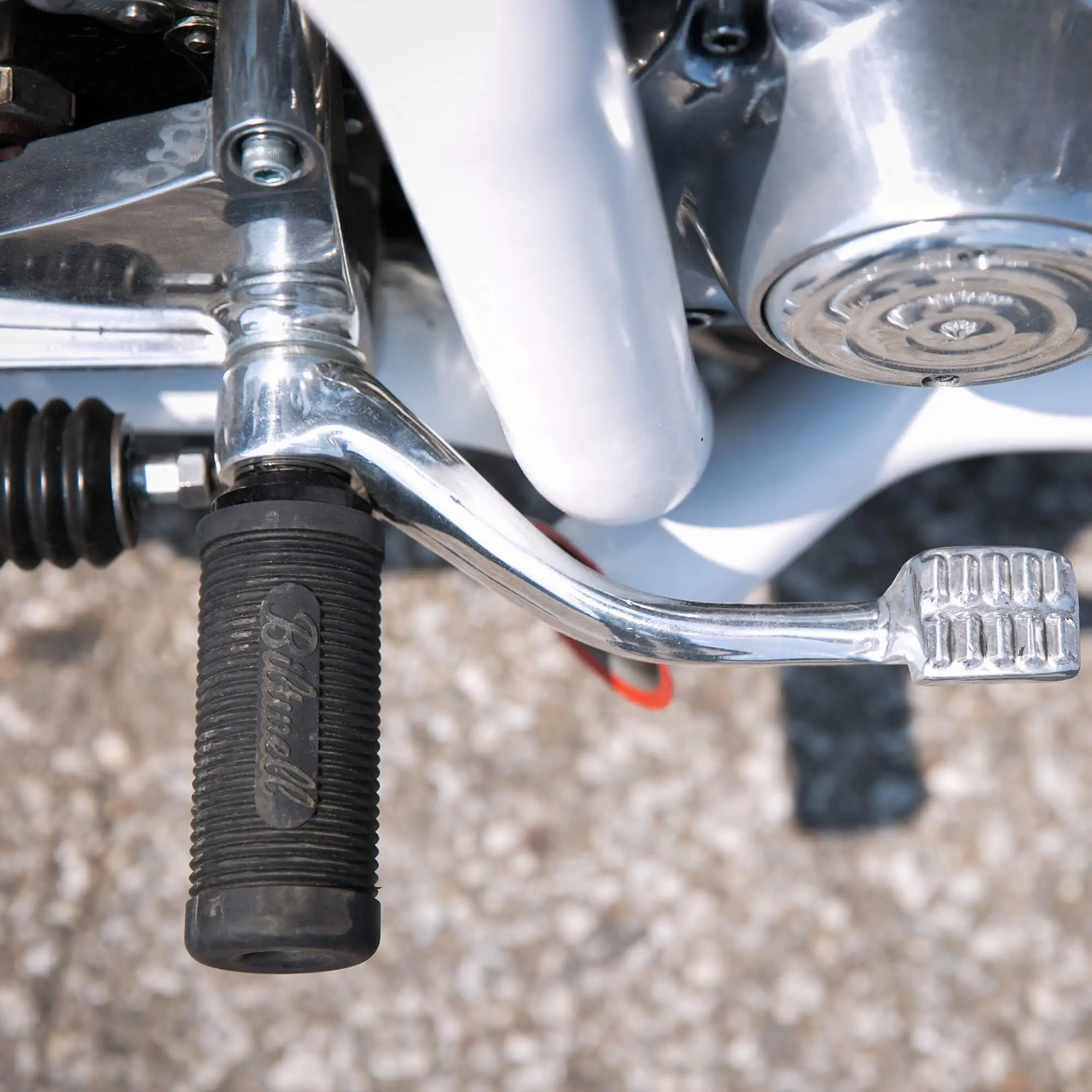 These injection-molded PVC foot pegs feature a CNC lathe-turned aluminum core to create a super-strong, traction-packed place to rest your feet. Retro British/Japanese styling looks great on modern and vintage bikes alike.