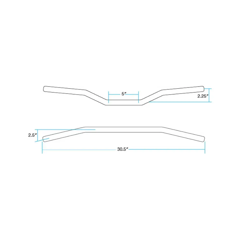 | HANDLEBAR MEASUREMENT NOTES See the example diagram above to see how these handlebars are measured. Note that the diagrams are just examples, and are not drawings of this exact set of handlebars! For more information on handlebar measurements, and how to find the right set of bars for your bike, check out our Motorcycle Handlebars 101 article! | |