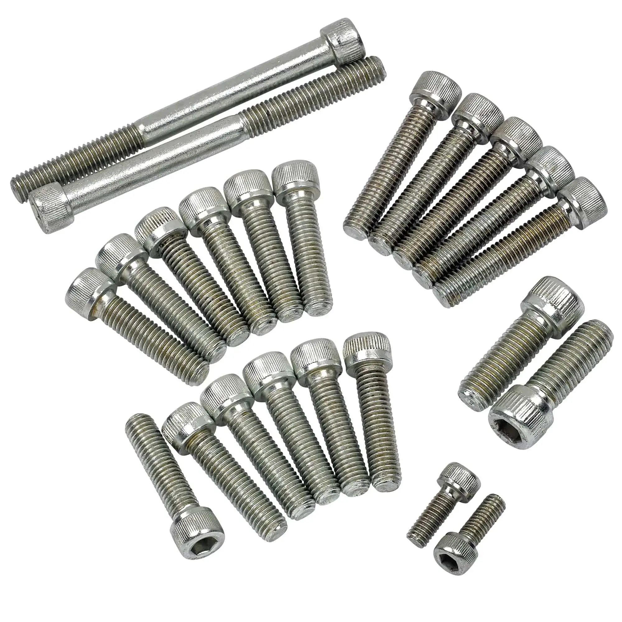 This Stainless plated set of allen head hardware will replace the chewed up screws on your Triumph motorcycle. Included is all the hardware needed to replace the screws on the timing cover, gearbox cover and primary cover. Not only do they look nice and new but they are much easier to remove than the old cheesehead screws. This set of hardware fits Triumph 650 c.c. Motorcycles 1963 – 1968
