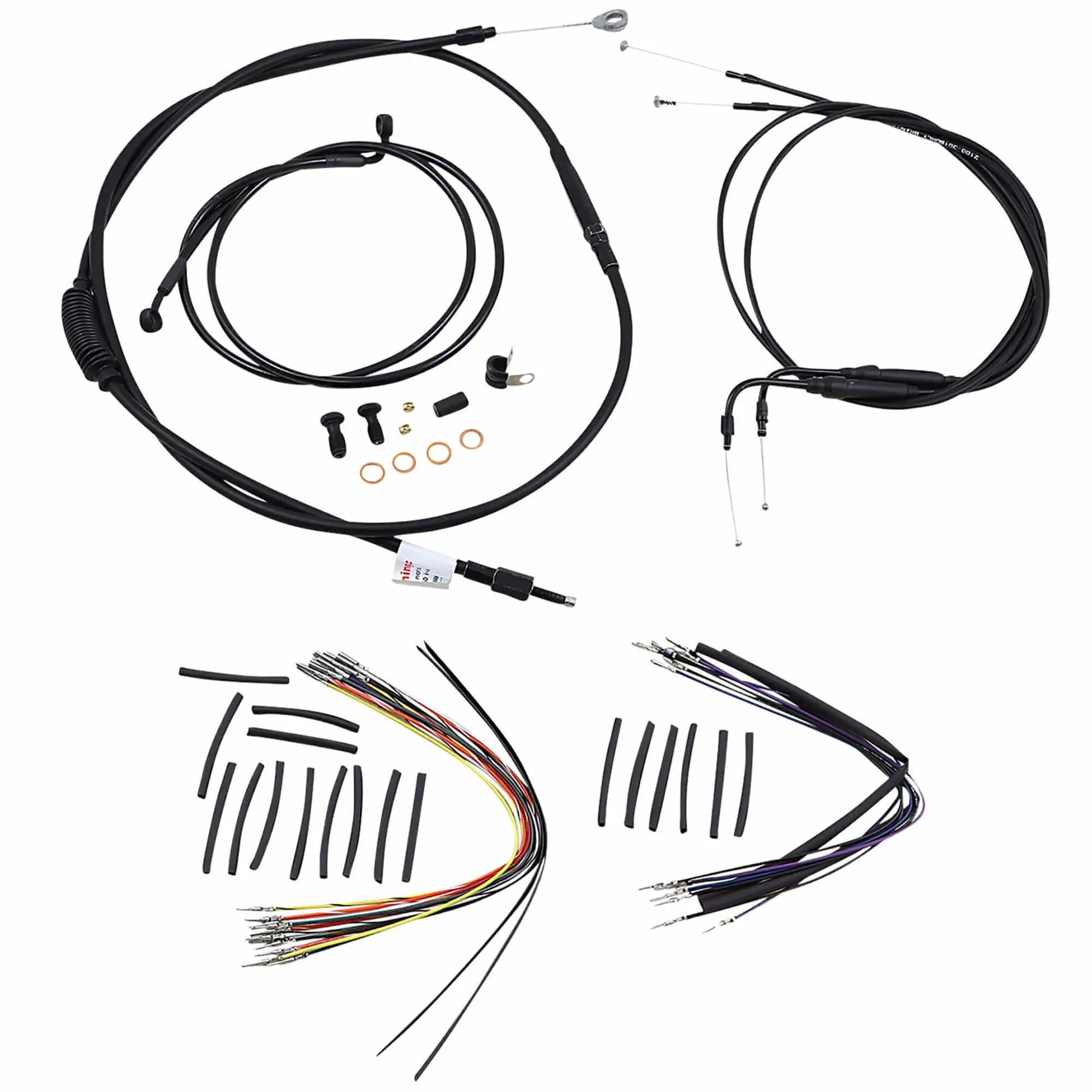 NOTE: Includes extended single-disc black braided steel brake line, extended clutch cable, extended throttle cables and all necessary wiring