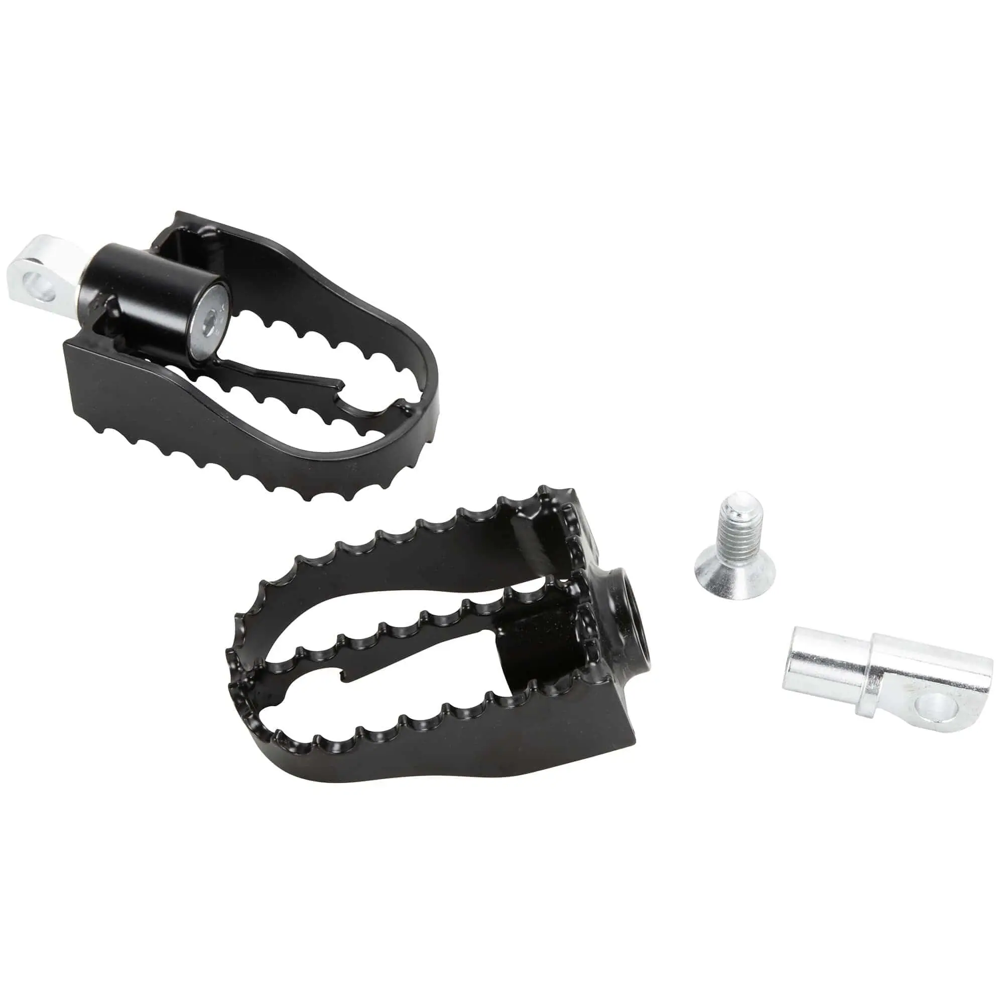 Billet aluminum is nice for your dad’s Bagger, but steel is the real deal and the new MX style pegs from Burly are just that. Inspired by the bear trap style of the 70βs motocross machines these MX pegs have an adjustable angle that will let you tune them to your liking. See Additional Information below for fitment.