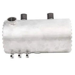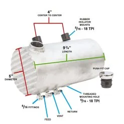 These finned-end aluminum oil tanks are 100% made in-house by Choppahead in the USA, all tig welded and come plumbed for Harley motorcycle. All you gotta do is mount it and run your oil lines! Comes with rubber mounts and oil cap. Made in MA, USA.