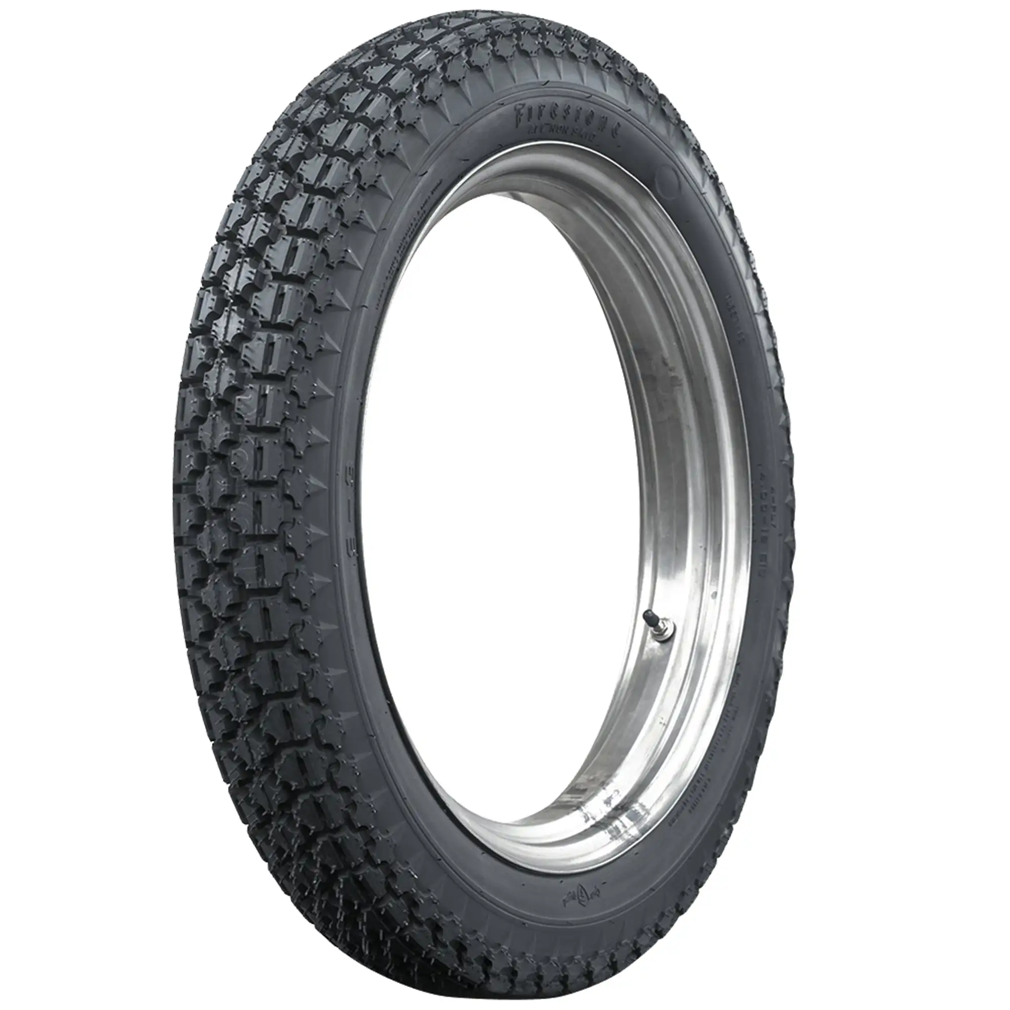 This Coker motorcycle tire fits thousands of vintage motorcycles, from classic Harley Davidsons, to customized bobbers, choppers and more. Firestone ANS Motorcycle tires were part of Firestone’s “A Tire for Every Riding Condition” ad campaign in the 1940s. This 450-18 size fits many American motorcycles from the ’50s, ’60s and ’70s. The All Non-Skid tire was an instant favorite, outperforming many competitors of that time. The Firestone ANS has become iconic on vintage motorcycles through the years, and has even become extremely popular for custom motorcycle builds more recently. Coker Tire Company proudly offers the legendary Firestone ANS Motorcycle tire in popularÂ