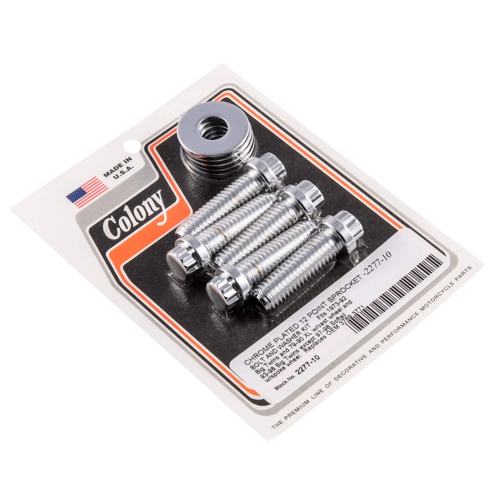 Colony #2277-10 Chrome 12 Point Sprocket Bolt And Washer Kit Harley Big Twin 73-92 XL 79-90