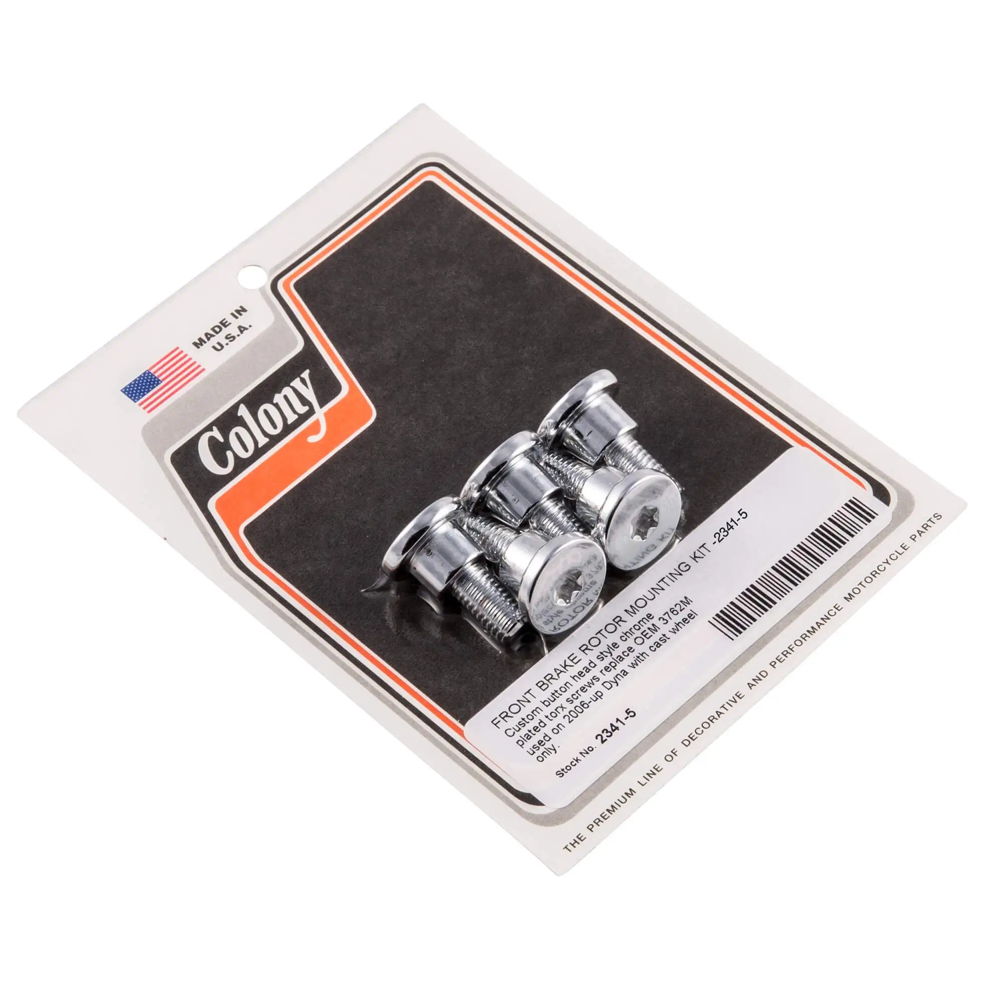 FRONT BRAKE ROTOR MOUNTING KIT Custom button head style chrome plated torx screws replace OEM 3762M used on 2006-up Dyna with cast wheel only.