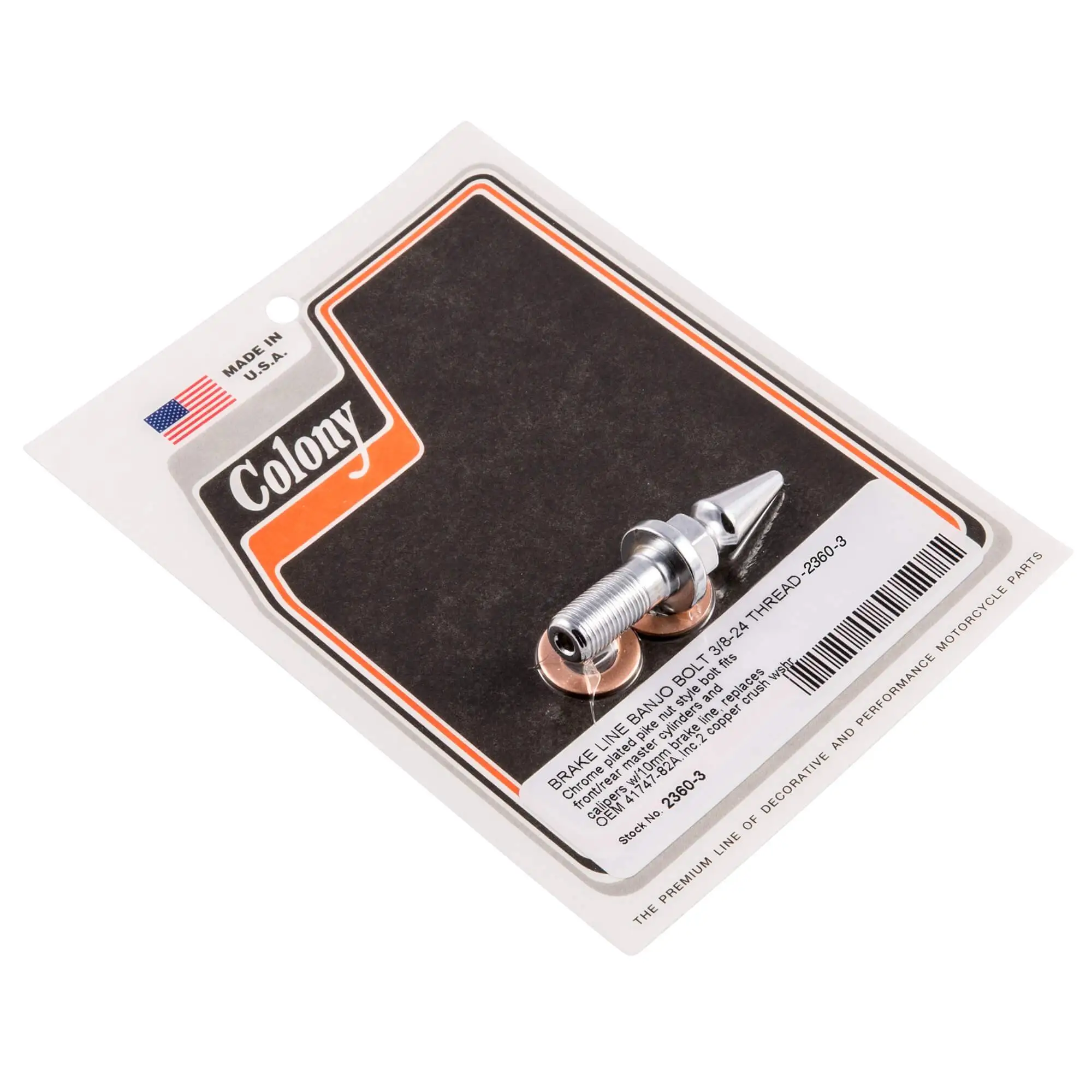 BRAKE LINE BANJO BOLT 3/8-24 THREAD Chrome plated pike nut style bolt fits front/rear master cylinders and calipers w/10mm brake line, replaces OEM 41747-82A.Inc.2 copper crush wshr.