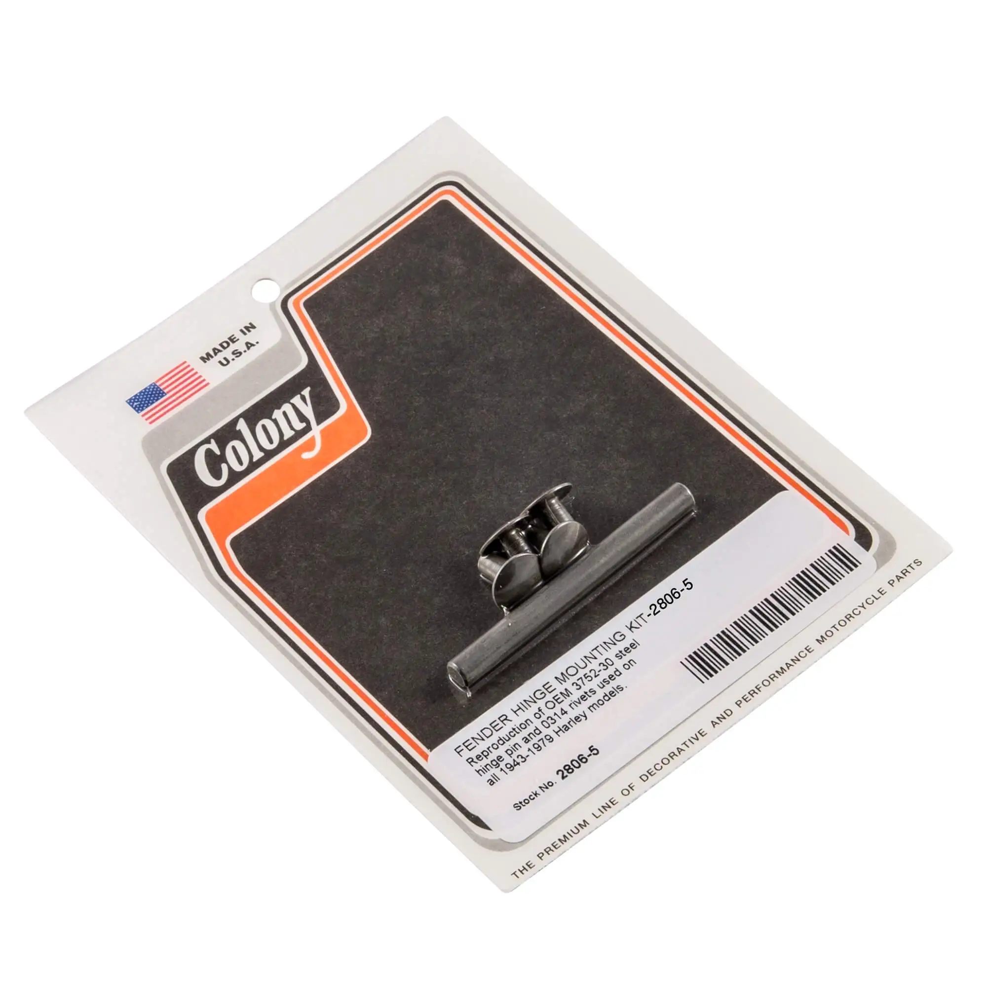 FENDER HINGE MOUNTING KIT Reproduction of OEM 3752-30 steel hinge pin and 0314 rivets used on all 1943-1979 Harley models.