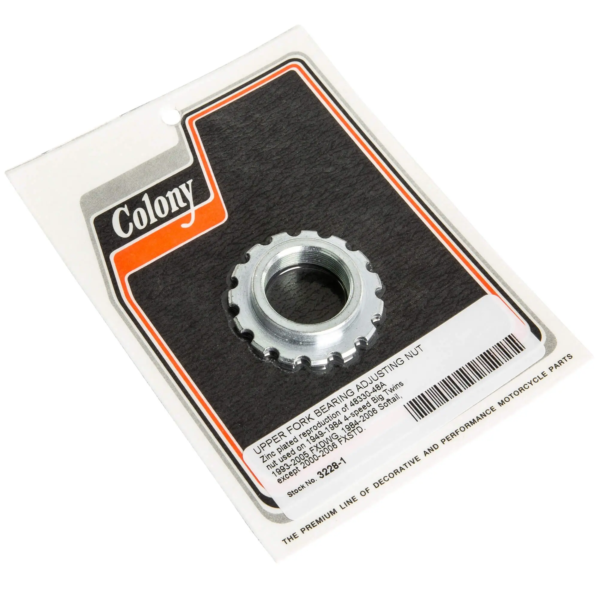 Colony #3228-1 Zinc Plated Upper Fork Bearing Adjustment Nut 1949 – 1984 Harley-Davidson 4-speed Big Twins 1993 – 2005 FXDWG 1984 – 2006 Softail OEM #48330-48A