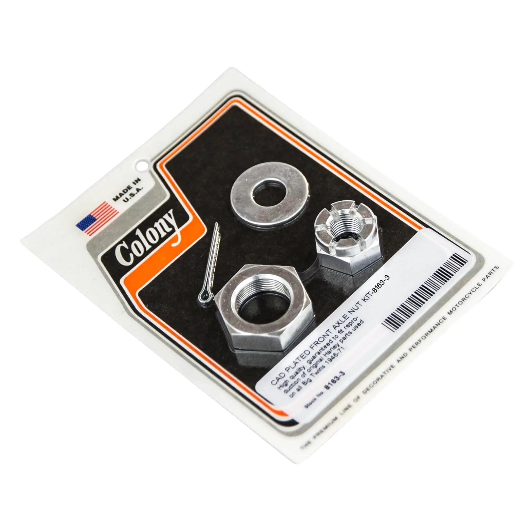 Colony #8163-3 Front Axle Nut Kit CAD Plated Fits 1946-71 Harley Davidson Big Twins