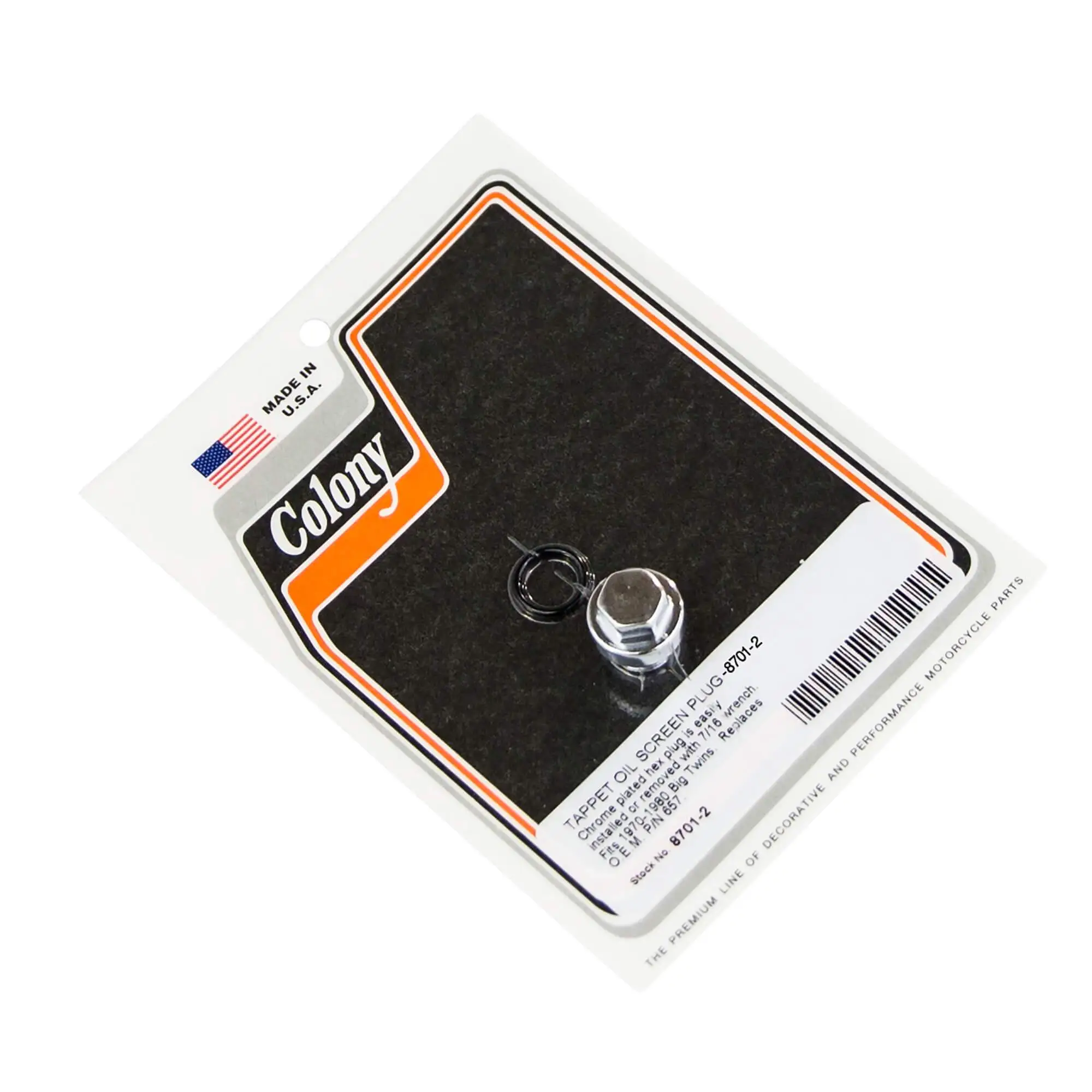Colony #8701-2 Tappet Oil Screen Plug Chrome Harley Big Twins 1970-80 OEM #657