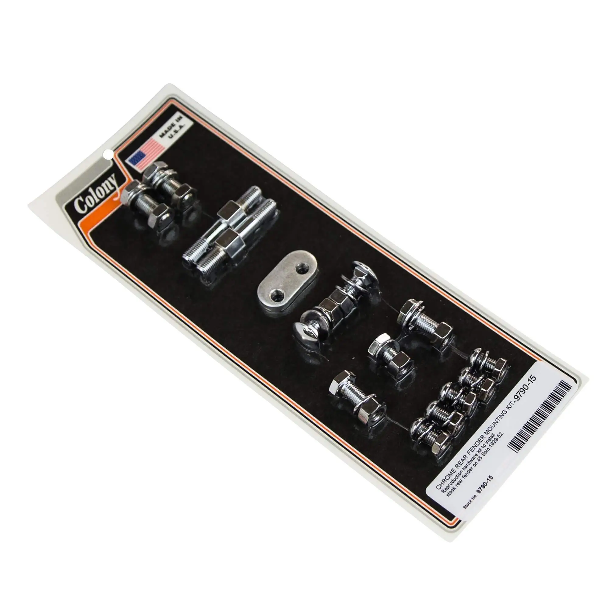 CHROME REAR FENDER MOUNTING KIT Reproduction hardware kit to install stock rear fender on 45 Solo 1929-52.