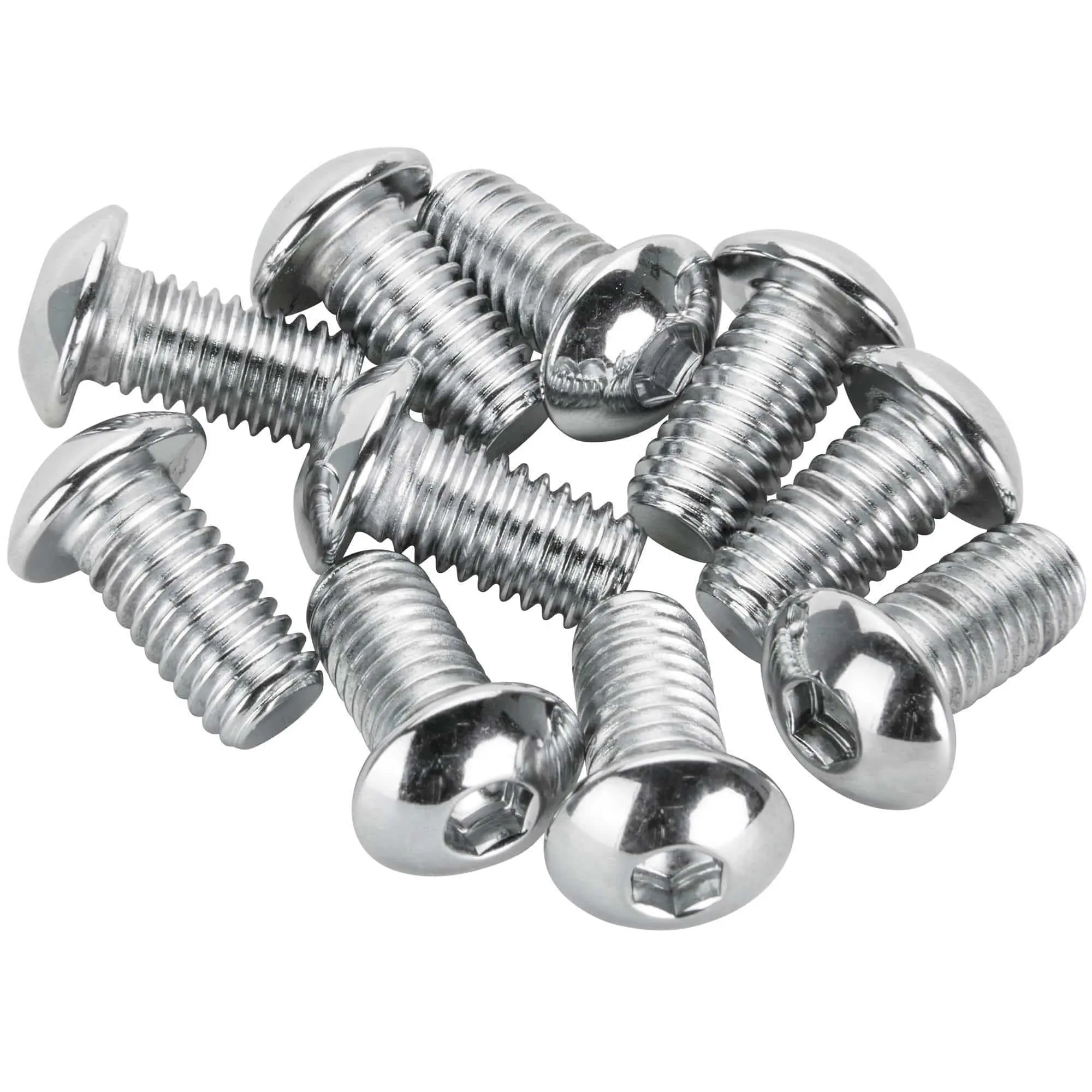 CHROME PLATED BUTTON HEAD ALLEN BOLT Size: 3/8-16 x 3/4 Bag of 10 pieces. Made in the USA.