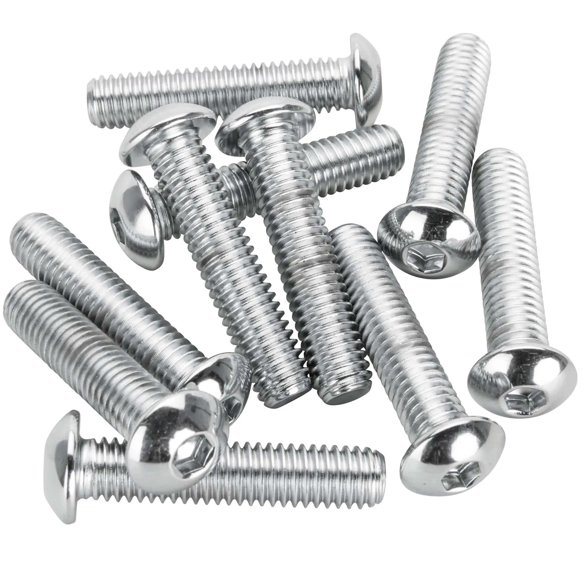 CHROME PLATED BUTTON HEAD ALLEN BOLT Size: 3/8-16 x 1-3/4 Bag of 10 pieces. Made in the USA.