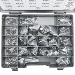 Complete assortment of chrome plated hex head bolts, Coarse thread. 240 total pieces, Includes satchel style tray. Made in the USA.