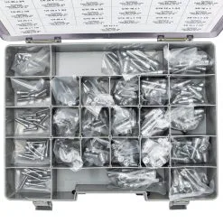 Complete assortment of chrome plated smooth head socket head screws, Coarse thread. 240 total pieces, Includes satchel style tray. Made in the USA.