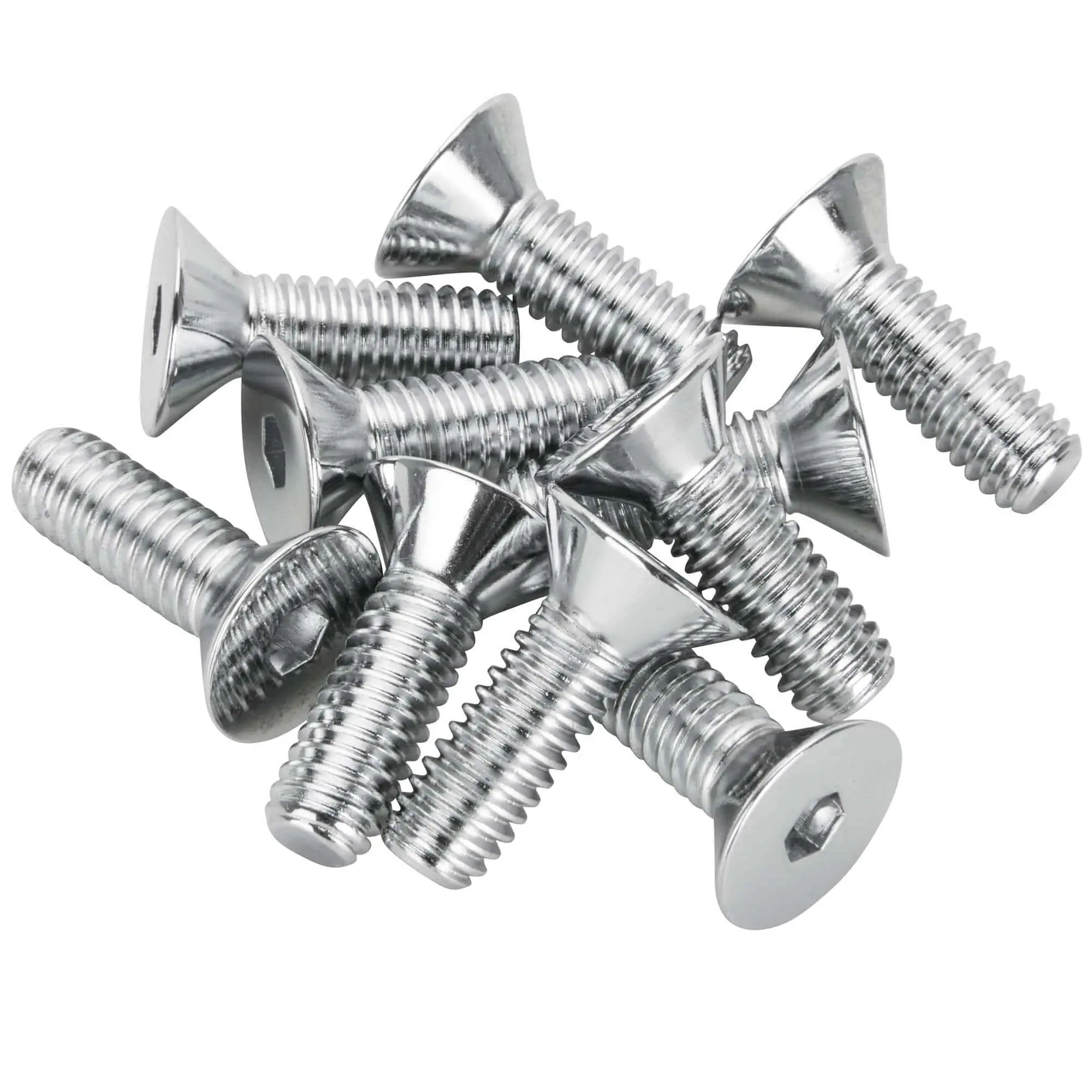 CHROME PLATED FLAT HEAD ALLEN Size: 5/16-18 x 1 Bag of 10 pieces. Made in the USA.