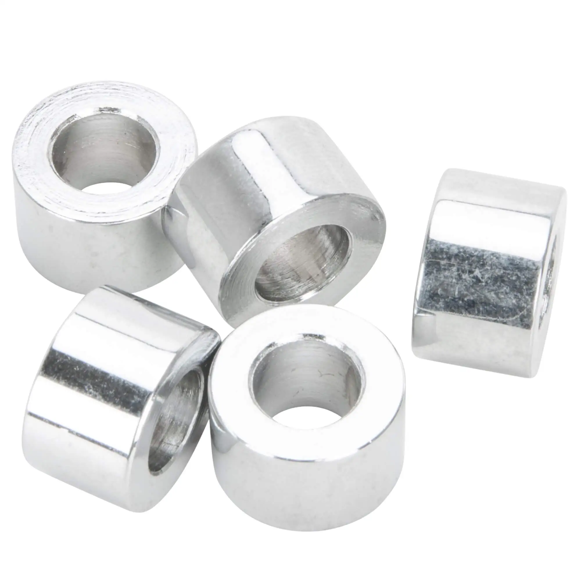 CHROME PLATED STEEL UNIVERSAL SPACERS Size: 5/16 inside diameter x 3/8 inch length. 5/8″ ouside diameter. Bag of 5 pieces. Made in the USA.