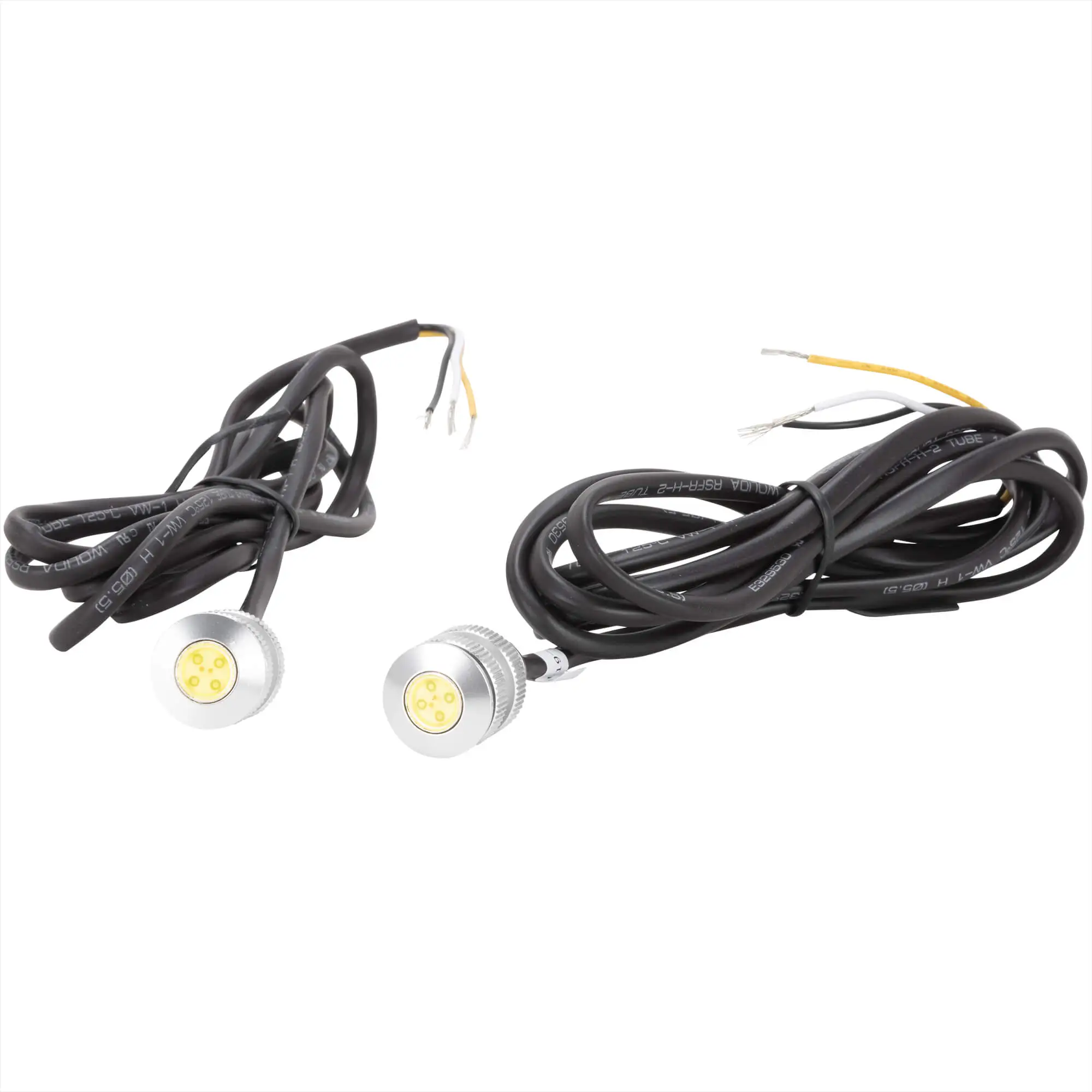 - Super bright LEDs for an eye-catching white running light and amber LED turn signal