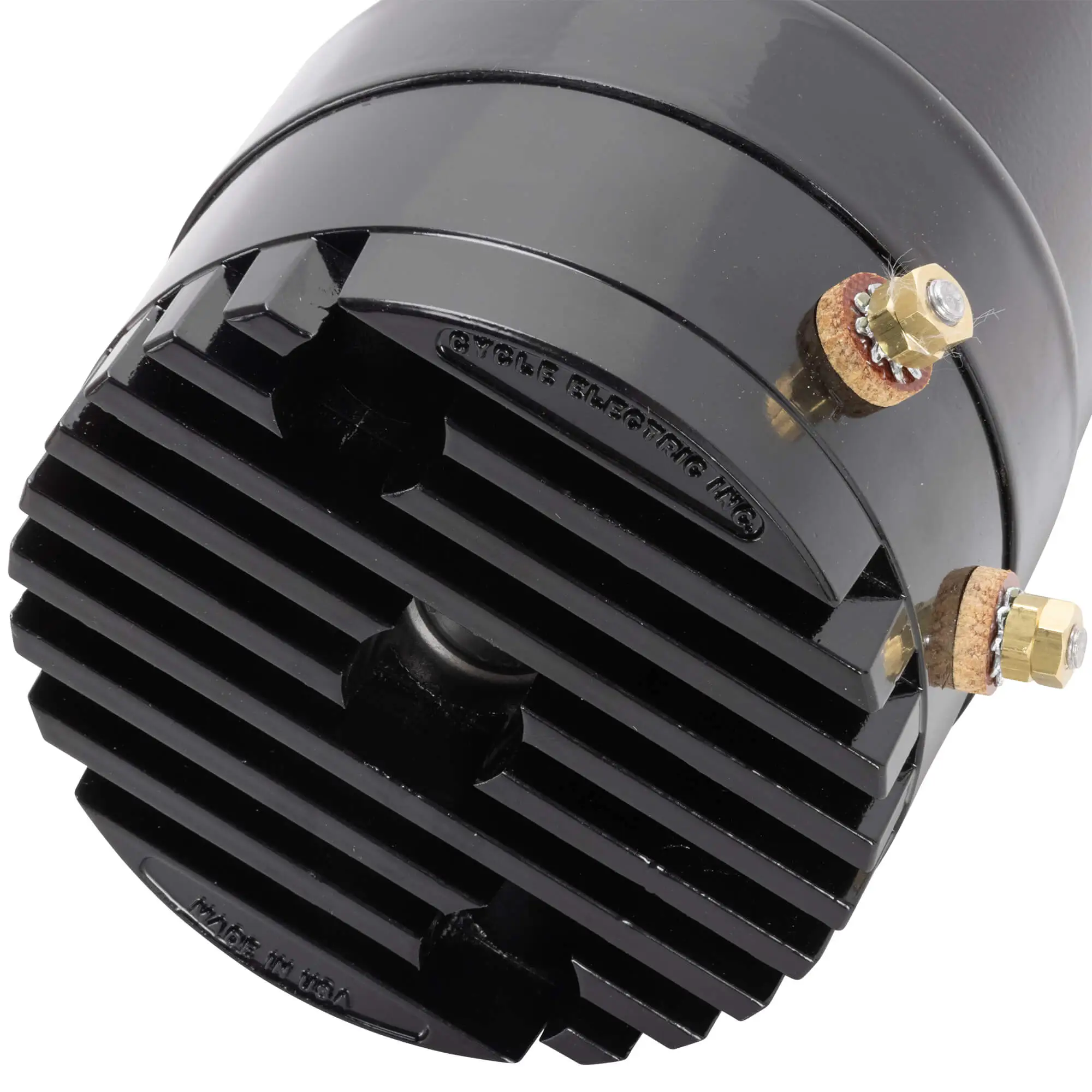 Higher service output than a stock generator backed by a 2 year Cycle Electric guarantee. Repair service is available after 2 years; this is the last generator you will ever need to buy for your bike. The “”L”” or low voltage model comes with a low voltage regulator specially tuned for a small 12-volt battery. This is especially important when using a small battery in a horseshoe oil tank. The low volt was designed for use when converting from a 6-volt system to a 12-volt system. These low voltage models also have Cycle Electric ‘M’ option which assures cradle clearance when installing on 1957 and earlier motors. There are two methods to mount a two-brush generator on 1957 and earlier motors. One is to enlarge the mounting holes in the engine case to fit the larger 5/16″ bolts. The second method is to use helicoils to reduce the 5/16-24 threads in the mounting holes down to 1/4-24 and use the stock bolts. Made in the U.S.A. by Cycle Electric right here in Ohio!
