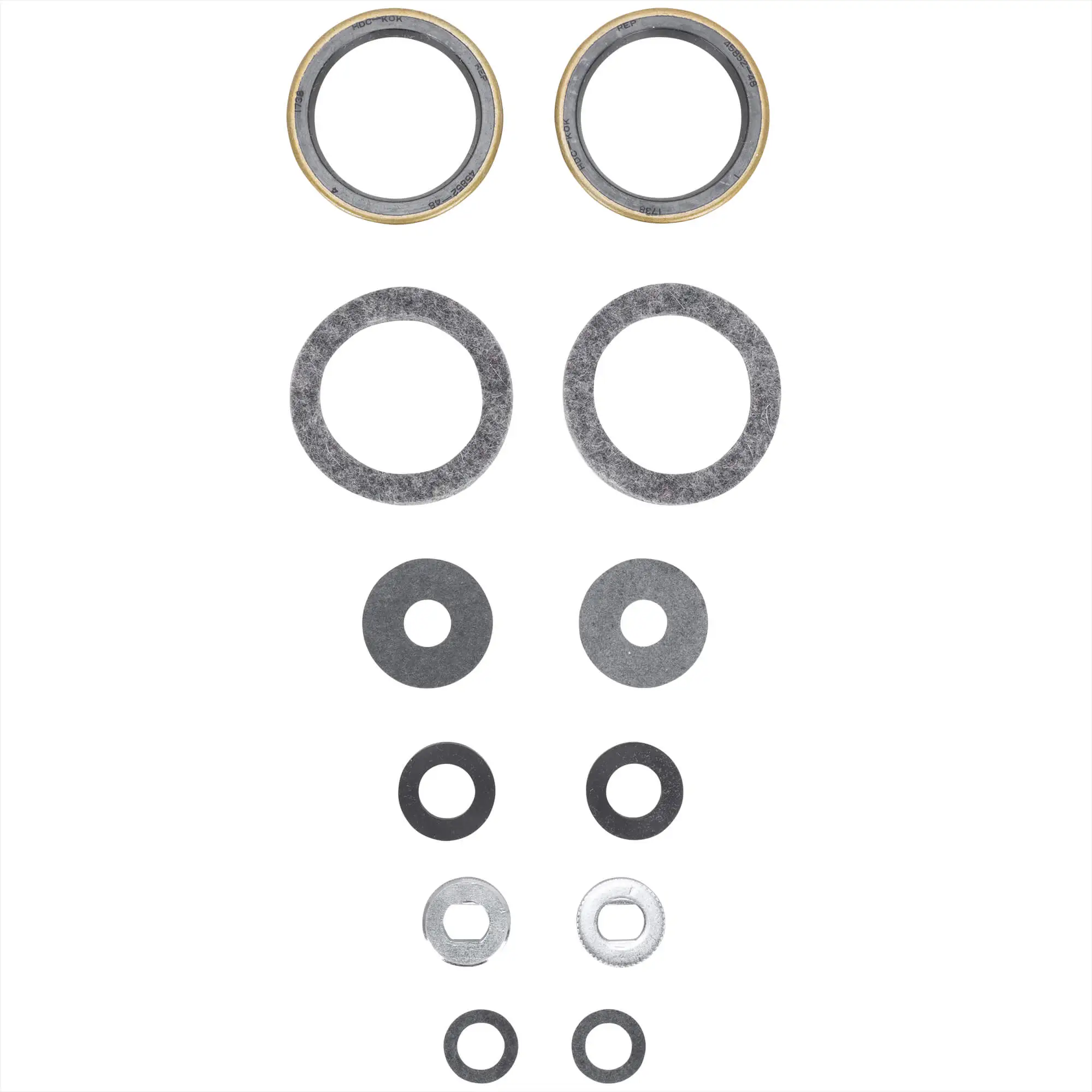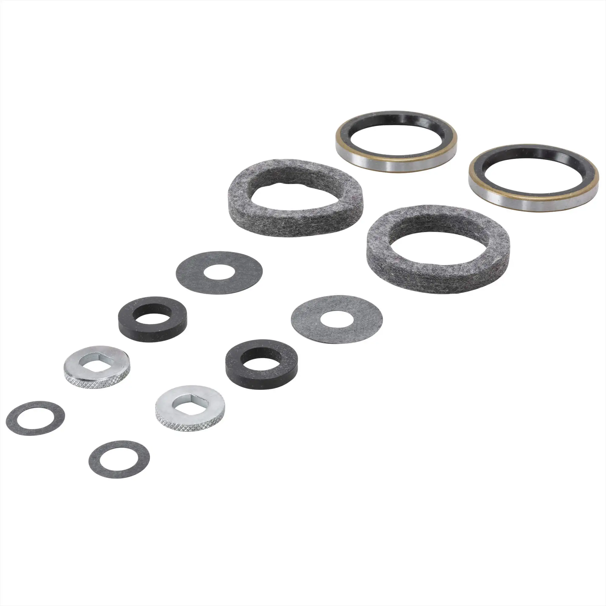 - Includes 2 seals, 2 thick rubber washers, 2 felt washers, 2 zinc washers, 2 flat washers, 2 thin washers.
