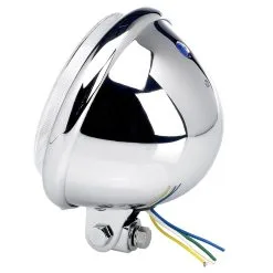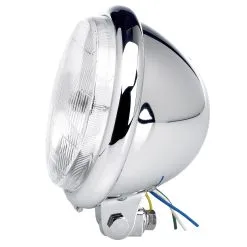 These chromed headlights are 5-3/4″, Bates-style bottom-mount headlights, perfect for choppers and custom bikes. 12 volt 100/55 watt halogen high/low bulb is included. You can