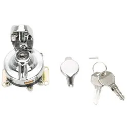 This Cycle Standard5 terminal ignition switch replaces the early and late style Harley-Davidson OEM #71500-36T switch as used on the dash of 1936 -1972 (Knucklehead, Panhead, Shovelhead etc) and 1973 – 1993 models. Very nice quality and a direct replacement for the stock switch. Additionally, an early style (1936-72) cover and pivot pin are included in addition to the late-model style (1973 & later) cover that comes installed. Two keys included.