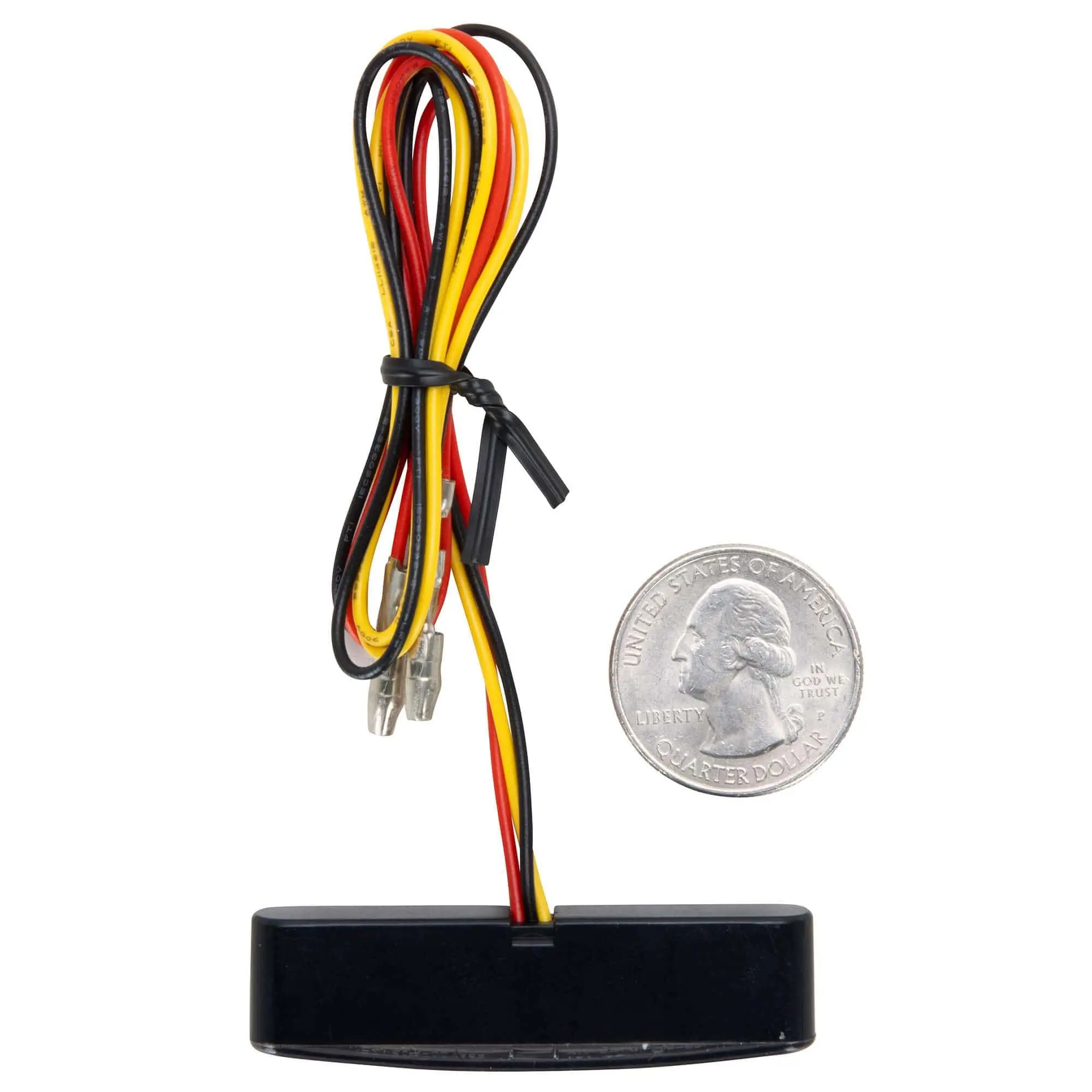 Aurora Mini LED Tail Lights feature 9 bright shining LEDs for brake and taillight function. These are definitely mini, measuring only 2-1/8″ (54mm) wide, 19/64″ (7.2mm) high and 19/32″ (15mm) deep. Includes w strips of 3M adhesive double sided tape for mounting. Great for super low profile custom light setups. (Quarter not included!) Sold individually.