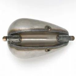 (Left side 1/4″ NPT, Right Side 3/8″ NPT) The tunnel, at deepest, is 3.5″ deep. The mounting tabs are undrilled, allowing you to drill and mount your tank exactly how you want it. These are a very nice quality tank, perfect for your home built chopper project. Pair this tank with a set of Lowbrow Customs
