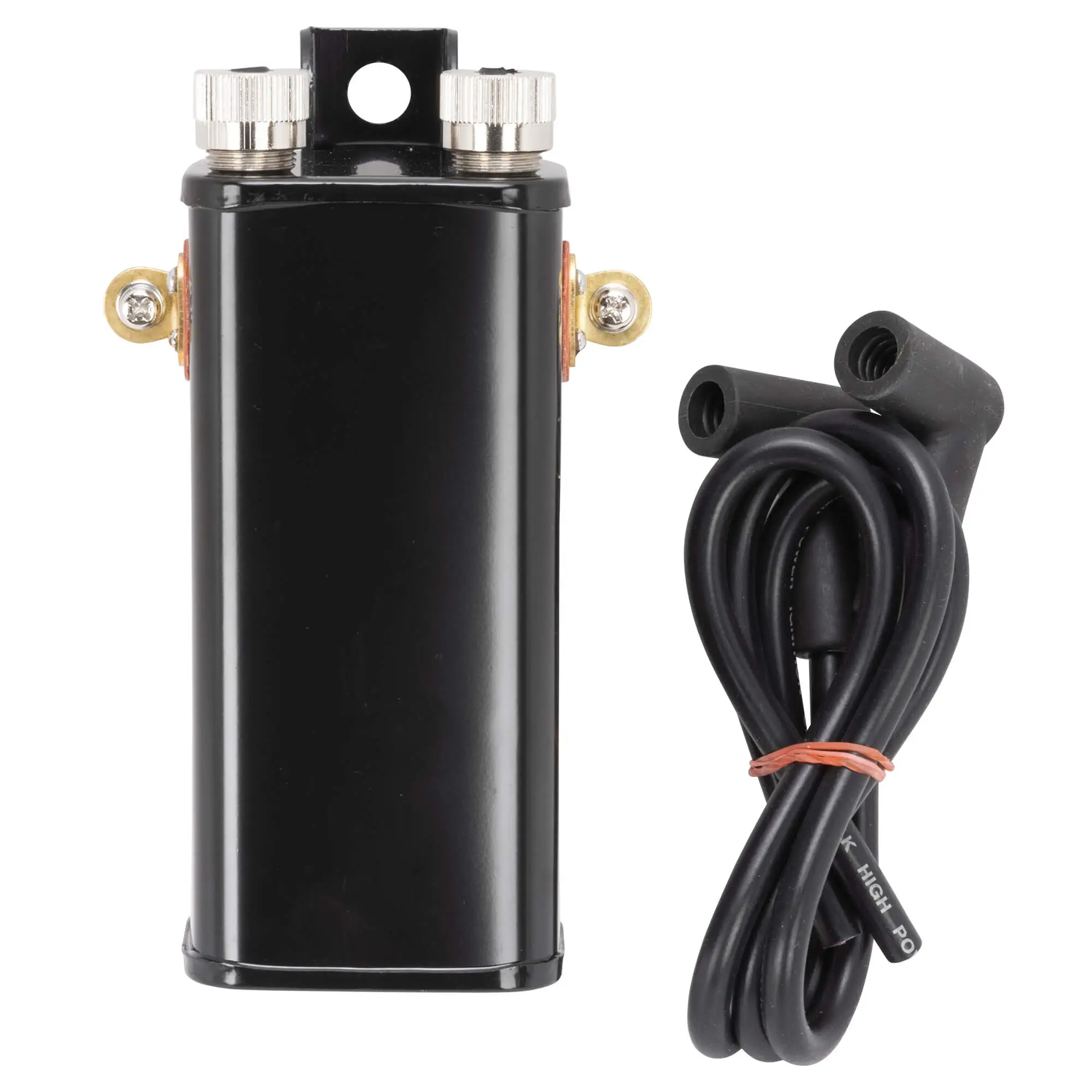 These replicas of the square style stock coils come complete with mounting bracket, spark plug plug wires and spark plug boots. Available in gloss black or high quality chrome finish. Available in stock 6 Volt, but also for models which have been converted to 12 Volt. Replaces Harley-Davidson OEM 31604-48. See Additional Information below for fitment.