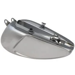 The Blackbird Legacy Gas Tank completely changes the look of your bike, and the best part is, it bolts on right in place of your stock gas tank, no modifications or welding required. The knee indents are reminiscent of early British motorcycles and add a touch of raw speed and class to your moto. This gas tank will work well on most any build, be it a cafe racer, chopper, bobber or just a mild custom.