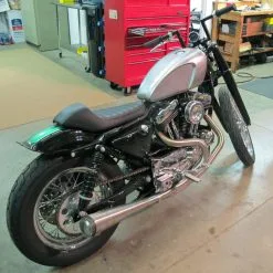 The capacity of this tank is approximately 3.5 gallons and fits 1982-2003 Harley-Davidson Sportster Models. The center mount gas filler bung that accepts a thread-in
