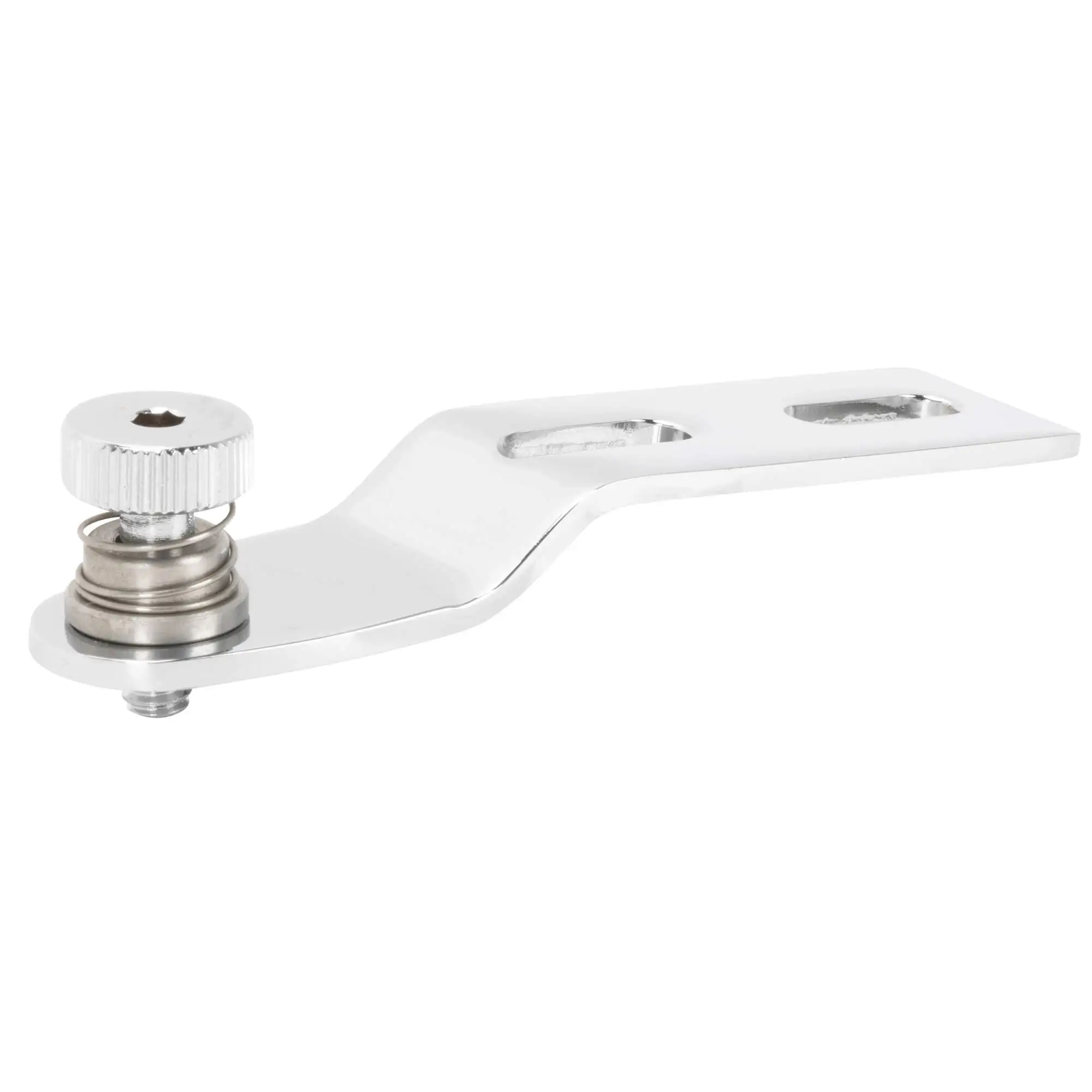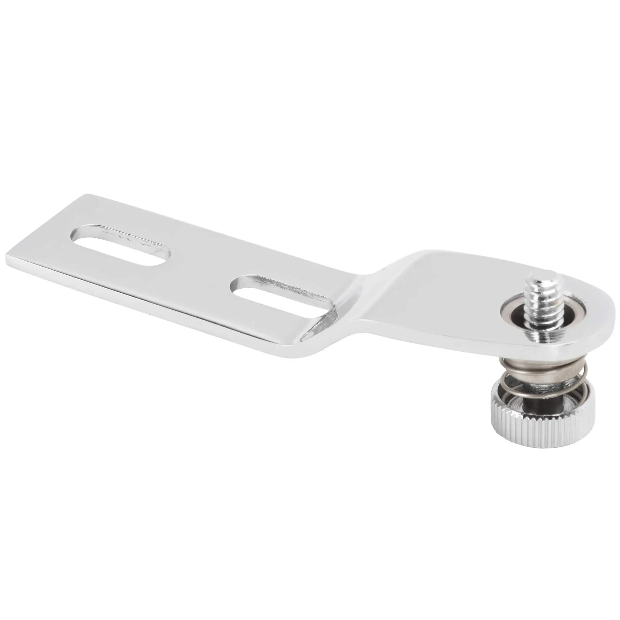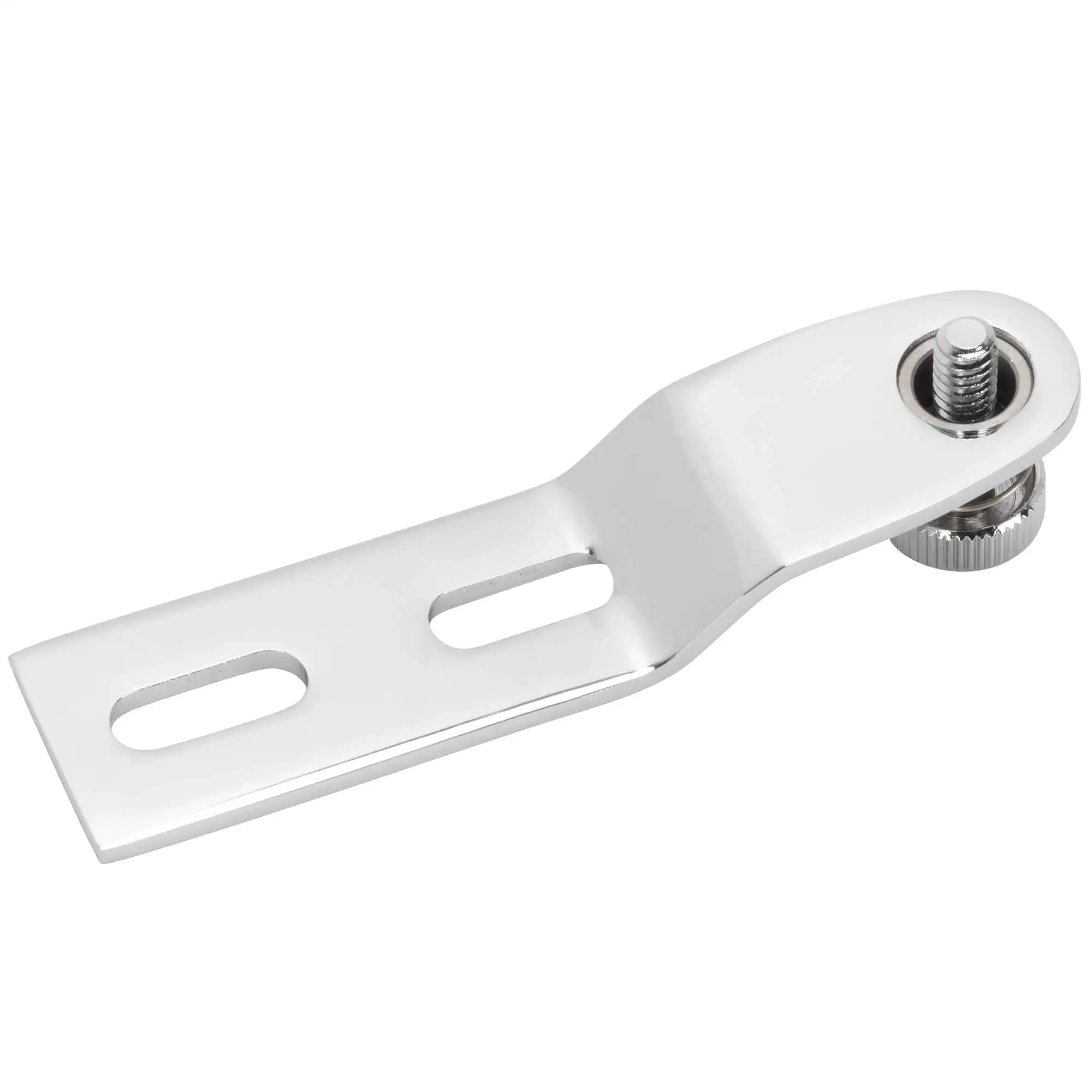 This chrome plated mounting bracket features a retained 1/4-20″ mounting screw that features a hex socket for tightening by wrench, as well as a knurled edge for finger tightening. The mounting screw stays attached to the bracket by means of a trick spring loaded system. Fits 1984 to present Softail, 1991 to present Dyna, 1983 thru 2003 Sportster and most 1986 thru 1994 FXR models. Also great for custom applications. Comes complete with nylon washer to protect your paint.