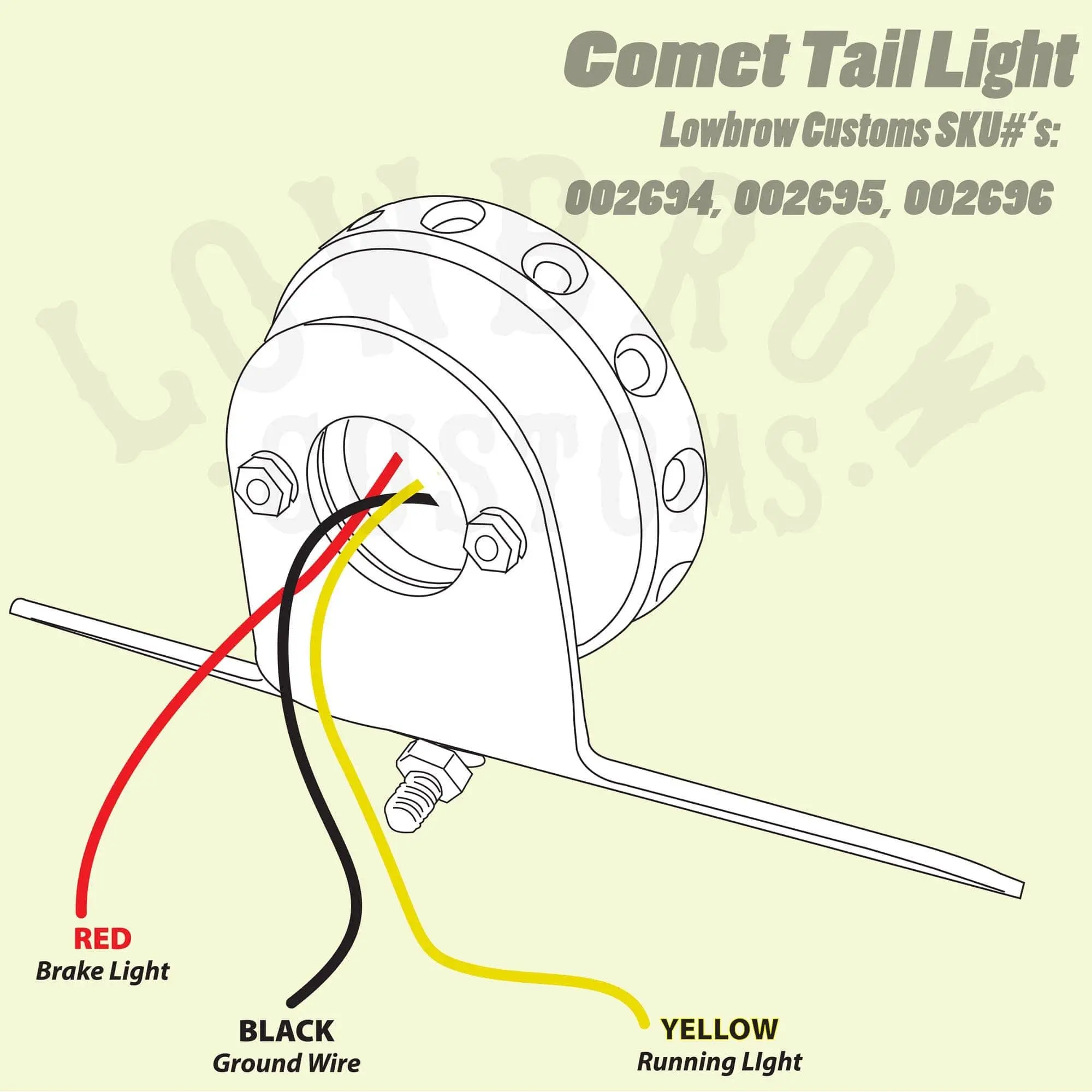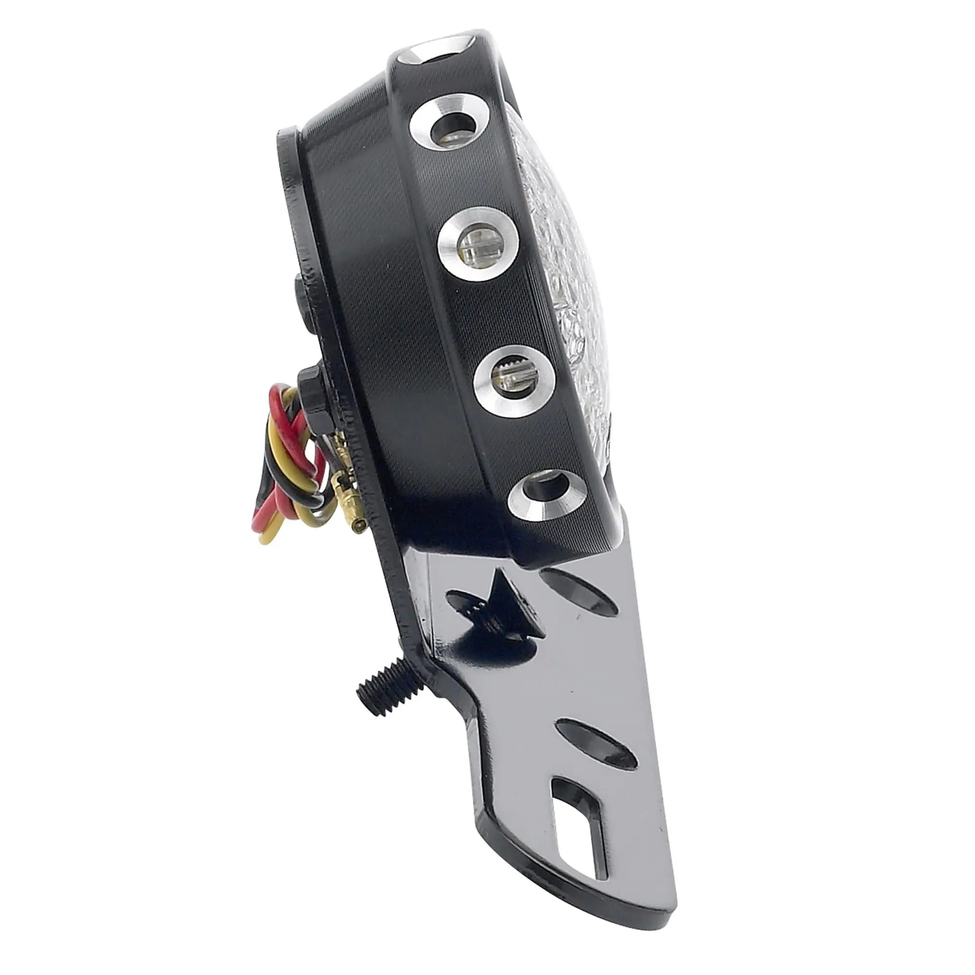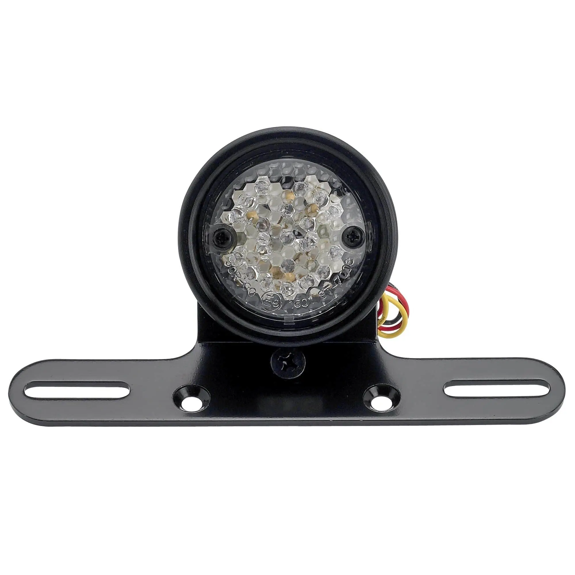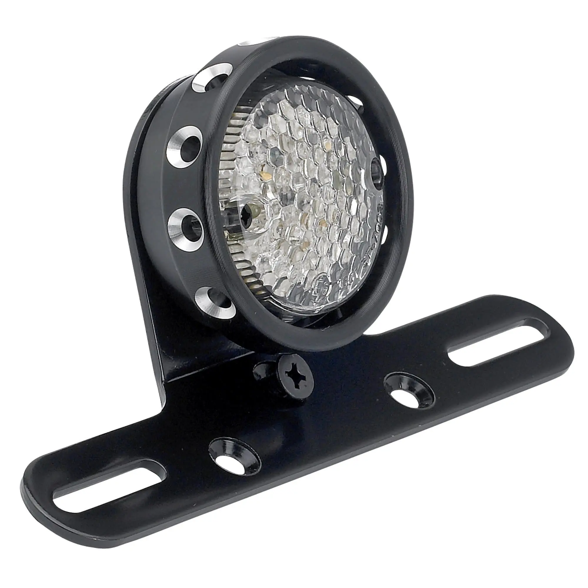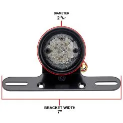 The Comet Tail Light features very bright LEDs for your running light, brake light, and license plate illumination and are built into a 2-3/4″ diameter aluminum housing. The lens appears clear but lights up red when running. Light is also visible through the chamfered holes surrounding the perimeter for increased visibility in this