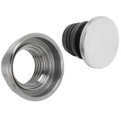 This polished stainless steel gas cap gives your motorcycle gas tank a clean custom look when installed. To remove, simply push the cap and turn slightly and it pops up. The knurled edge allows it to easily be unscrewed. The gas cap measures 2″ in diameter. It is completely flush when tightened down. The included filler bung is mild steel for easy welding into gas tanks for any custom applications. This cap is vented.