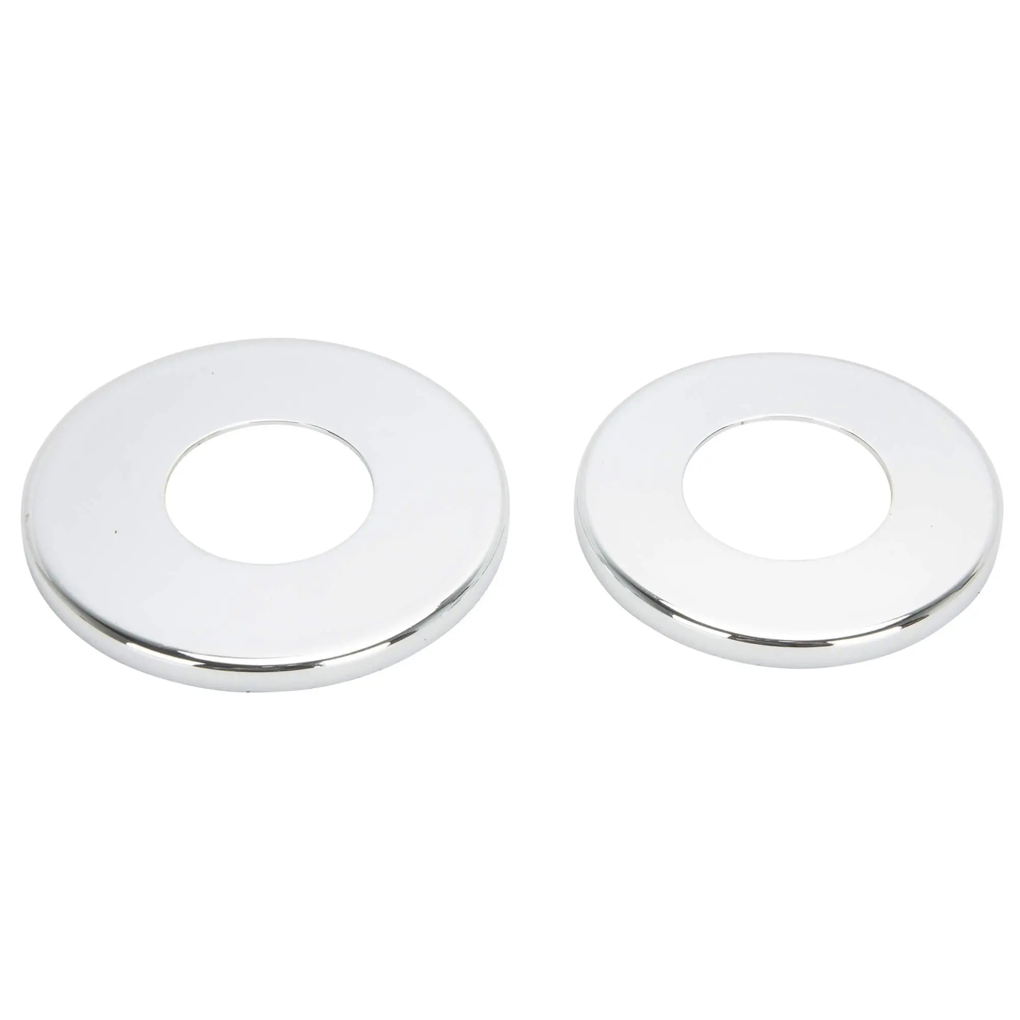 This chrome plated Fork Neck Cup Dust Shield set is designed for use with Timken bearings. Set includes top and bottom dust shields. Replaces OEM numbers 43865-48A 48361-8. The larger dust shield measure 2 3/8″ OD (Outside Diameter), and the smaller measures 2-3/32″ OD. See Additional Information below for fitment.