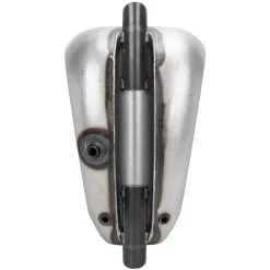 The Ribbed Laredo tank kicks the custom up a notch with a full length center rib, and offset chrome pop-up gas cap. Universal tab mounts and a shallow tunnel make for easy mounting on your backbone. The Laredo tank holds 3.1 Gallon (11.5L), and accepts a