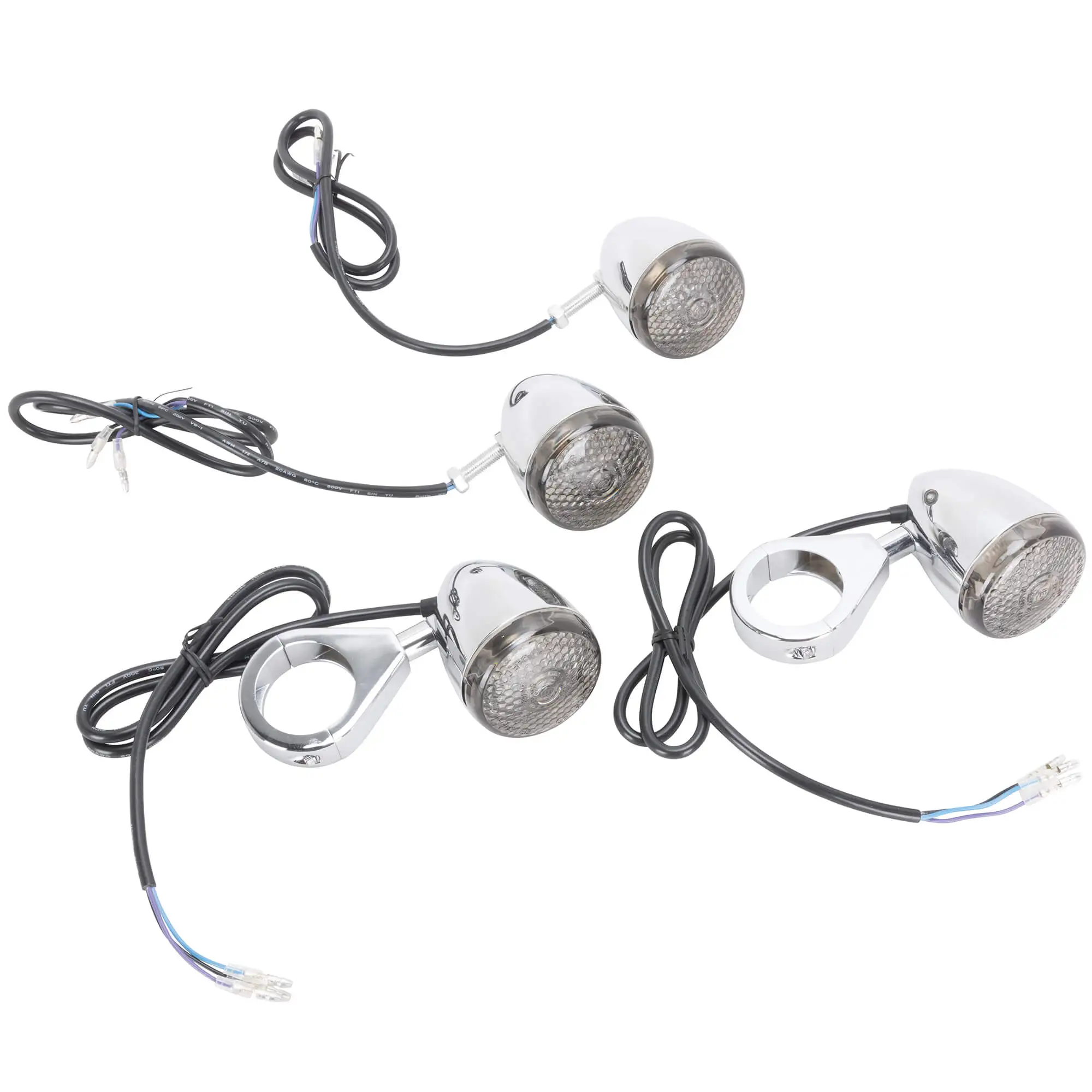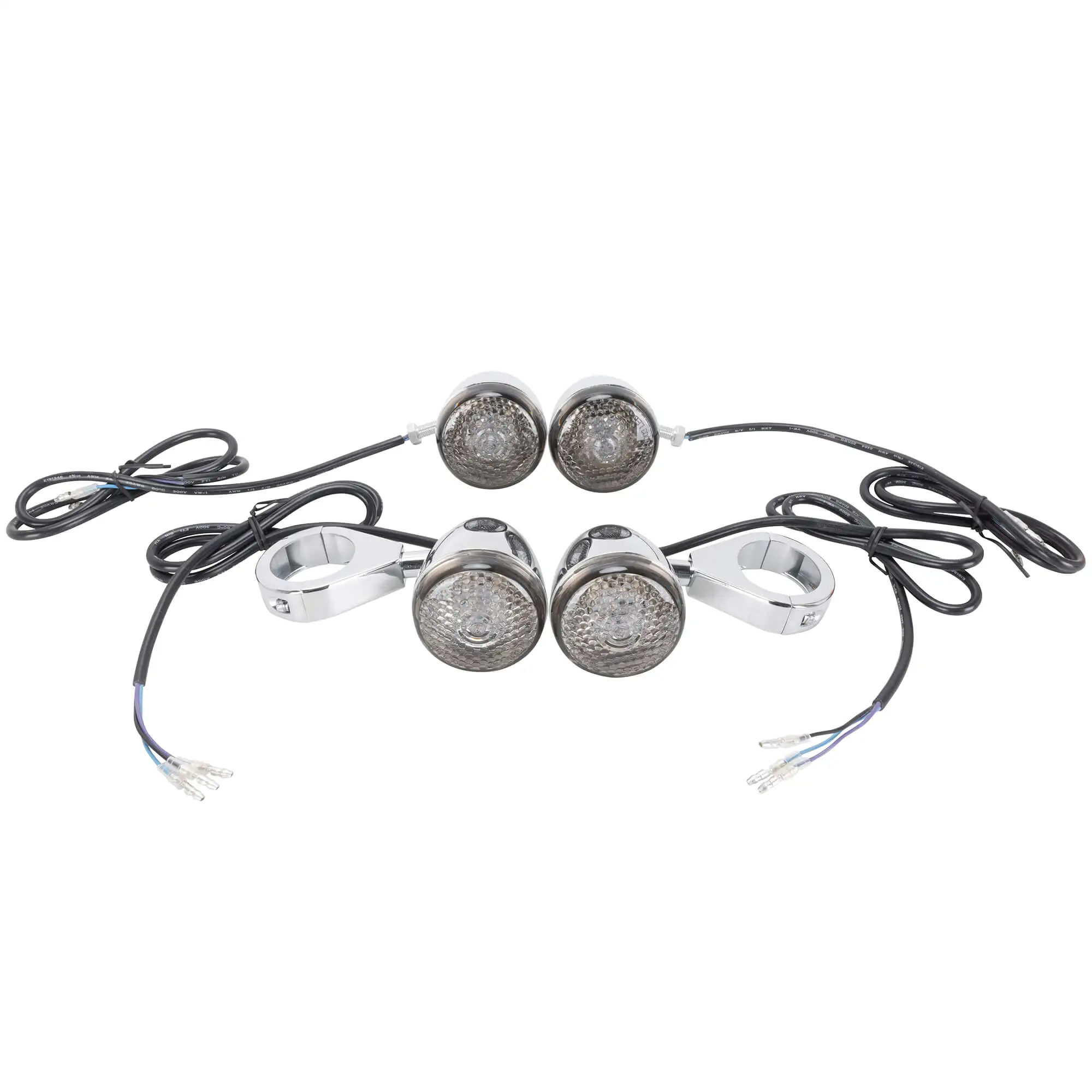 These LED Turn Signal Kits feature amber LED turn signals for the front and red LED turn signals for the rear of the motorcycle. These turn signals have a smoked lens and a chrome finish. This kit includes four LED turn signals that perform running light and turn functions. Two 41mm chrome fork tube clamps and hardware are included for mounting on the front of your motorcycle. These chrome Deuce style turn signals are perfect replacement for the OEM turn signals on your Harley-Davidson motorcycle.