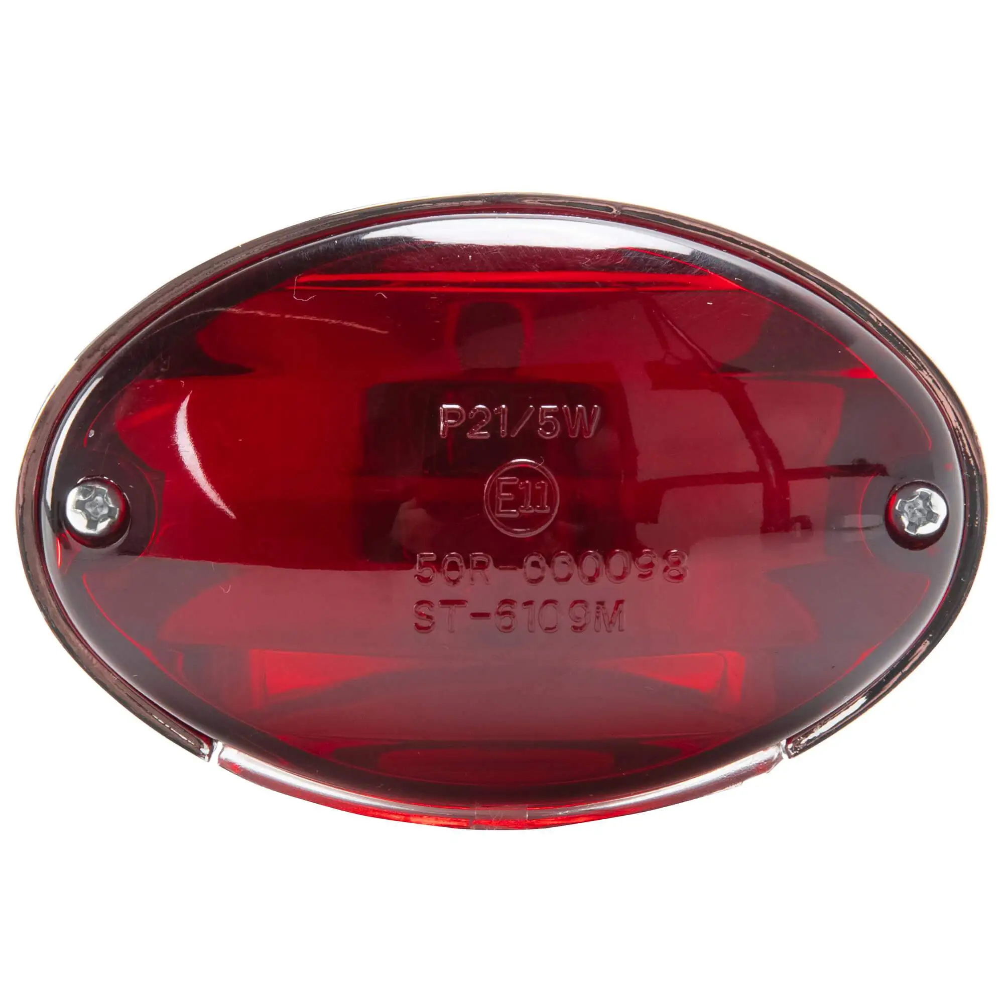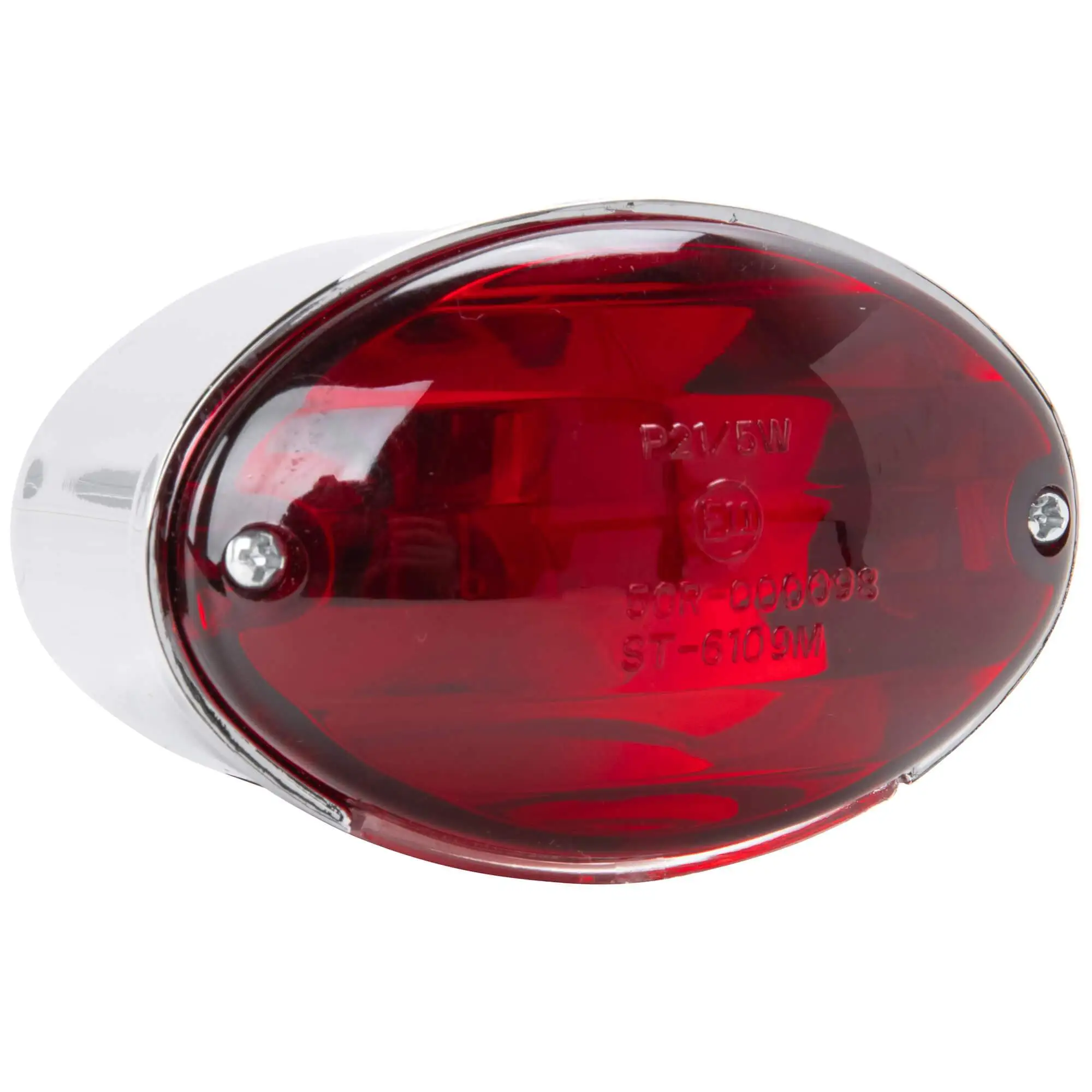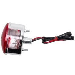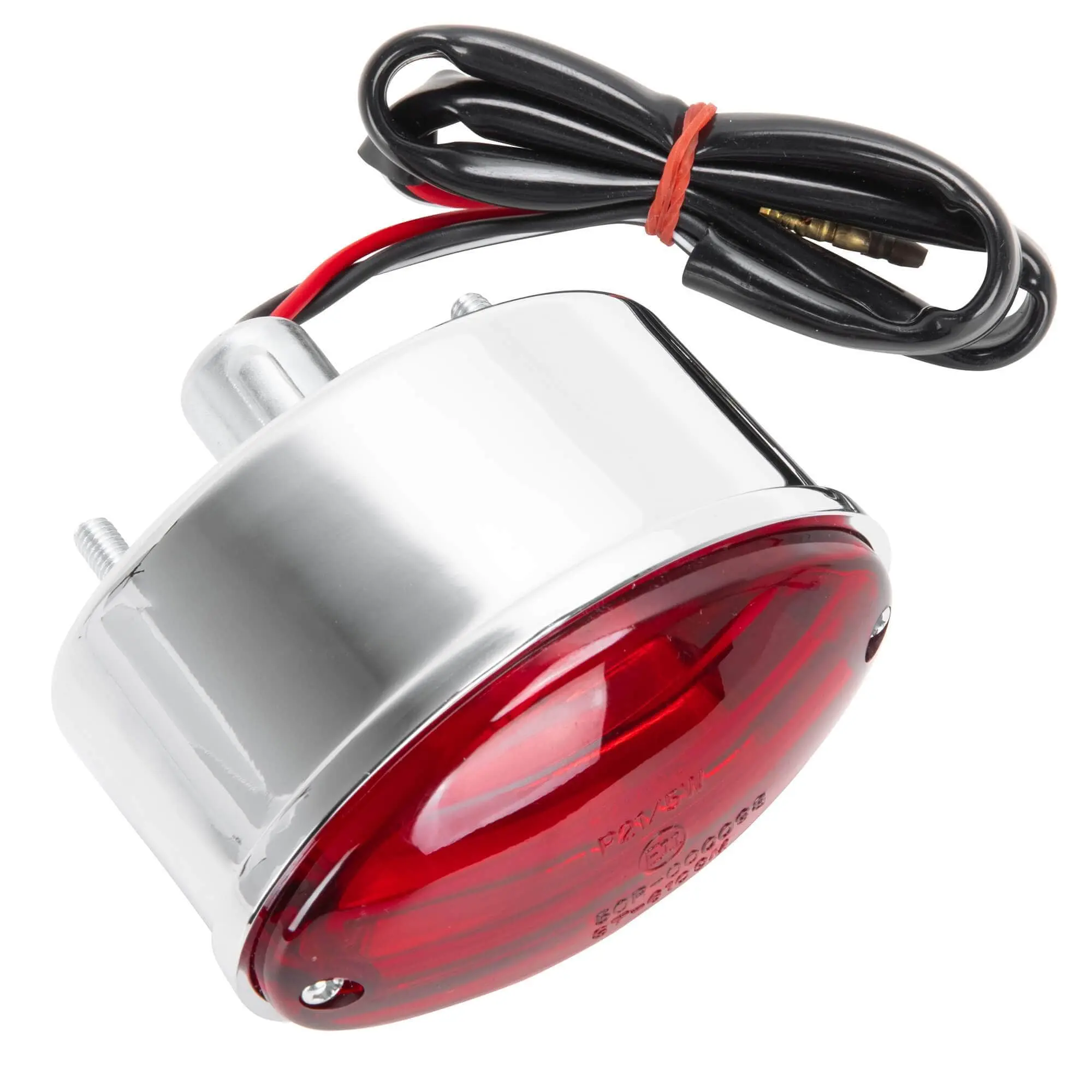 The Mini Cat Eye tail light measures only 3-1/4″ wide and 2-1/8″ high. A 12v dual filament bulb provides running light, brake light, and license plate illumination. EU approved.