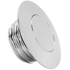 This larger diameter pop up cap has a 2.75″ diameter trim ring (the largest diameter section that lays flat against the gas tank). This ensures that the weld seam on the gas tank filler bung is fully covered. On Harley-Davidson motorcycles 2018 and later this bung size changed, and the trim ring on the smaller diameter (2.35″) pop-up caps doesn’t fully cover it. The diameter of the pop-out cap with knurled edge is 1.5″.