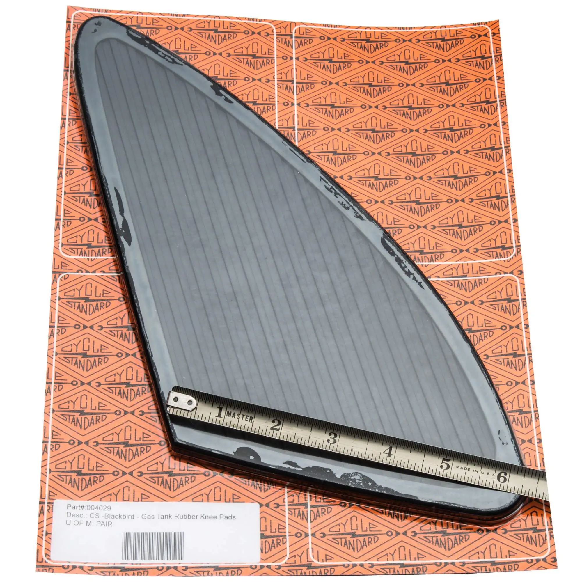 These rubber knee pads are designed specifically for the contours of the Blackbird Legacy Gas Tank series. Reminiscent of vintage British styling these will definitely set your motorcycle apart in the crowd. These fit all standard width Blackbird as well as Blackbird Slimline gas tanks. You can use a thin, strong adhesive tape or a contact cement to install these on your