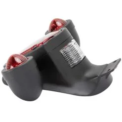 - Rear-facing red LEDs and clear LEDs pointed toward license illumination window